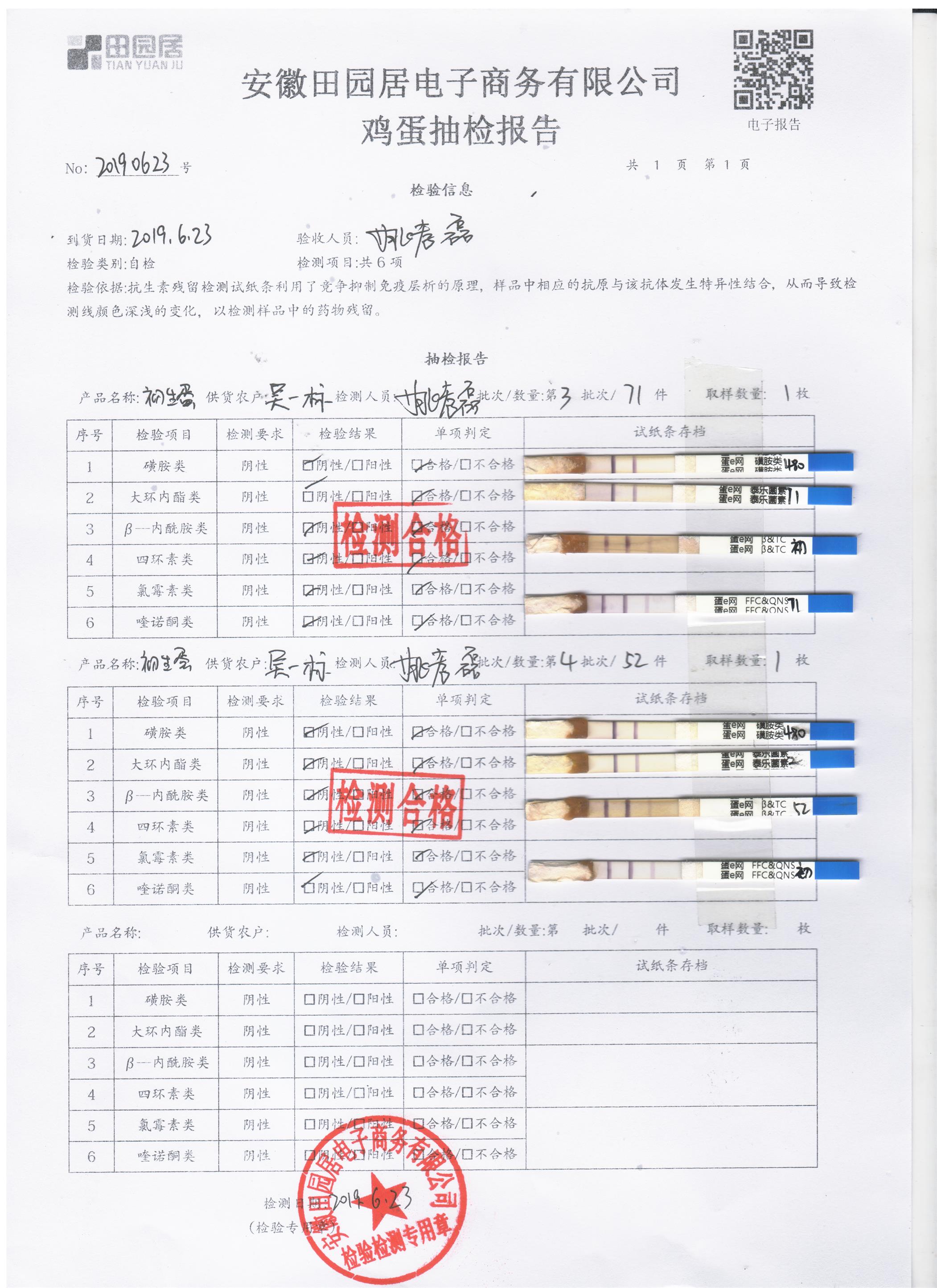 2019年6月23日鸡蛋自检报告