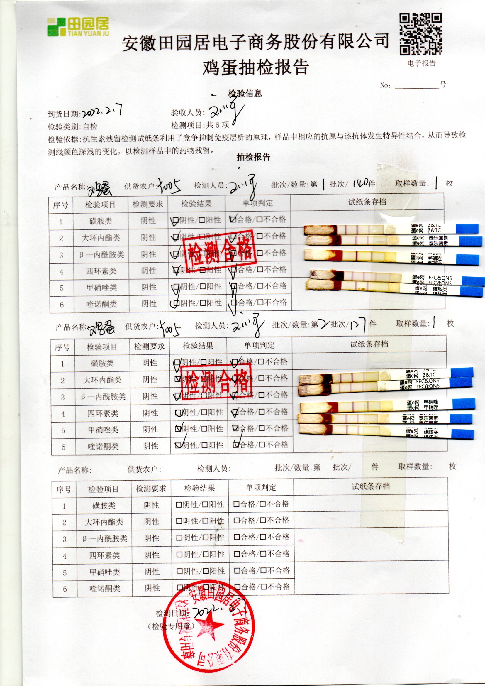 2022年02月07号鲜鸡蛋检测报告