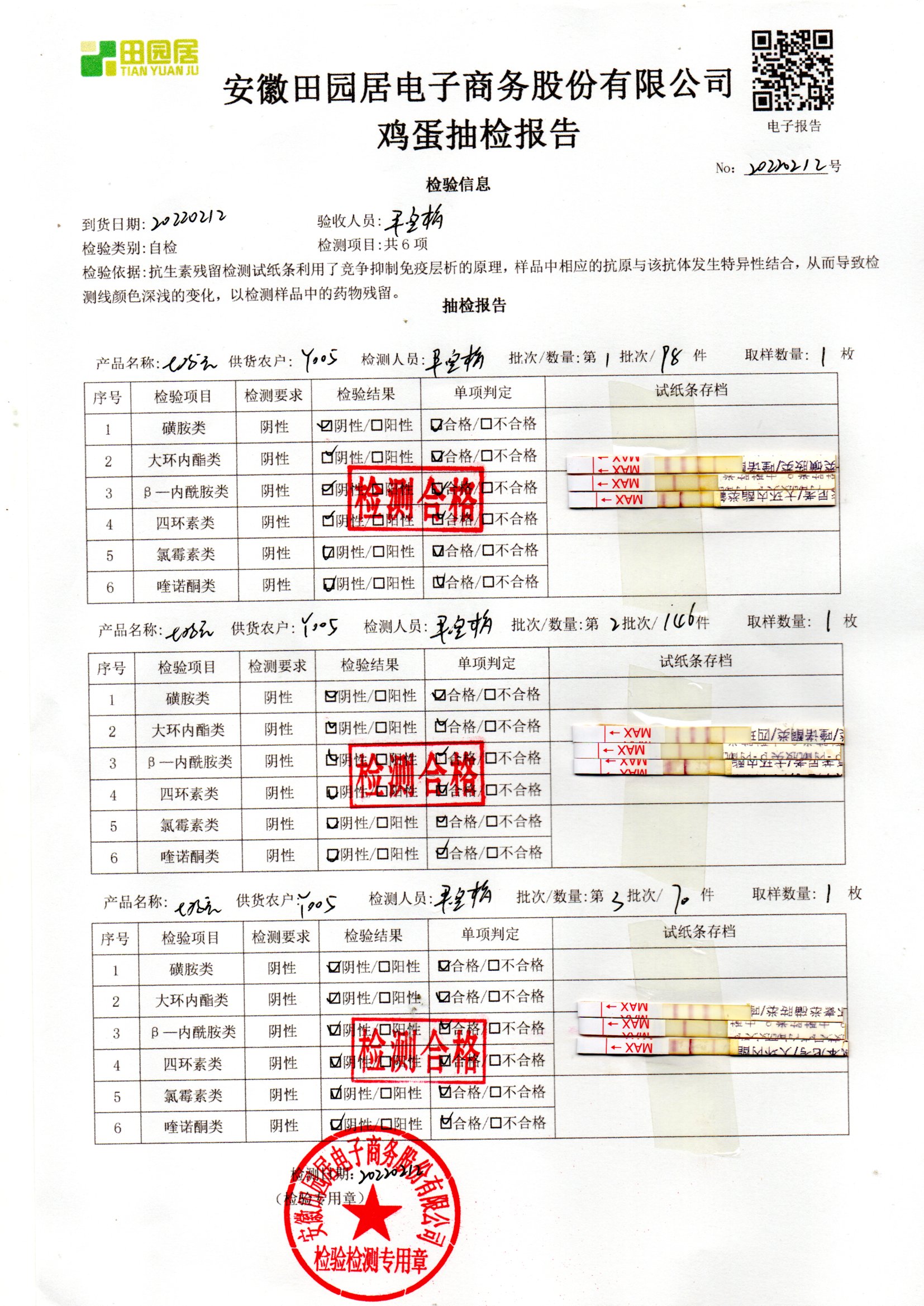 2022年02月12号鲜鸡蛋检测报告