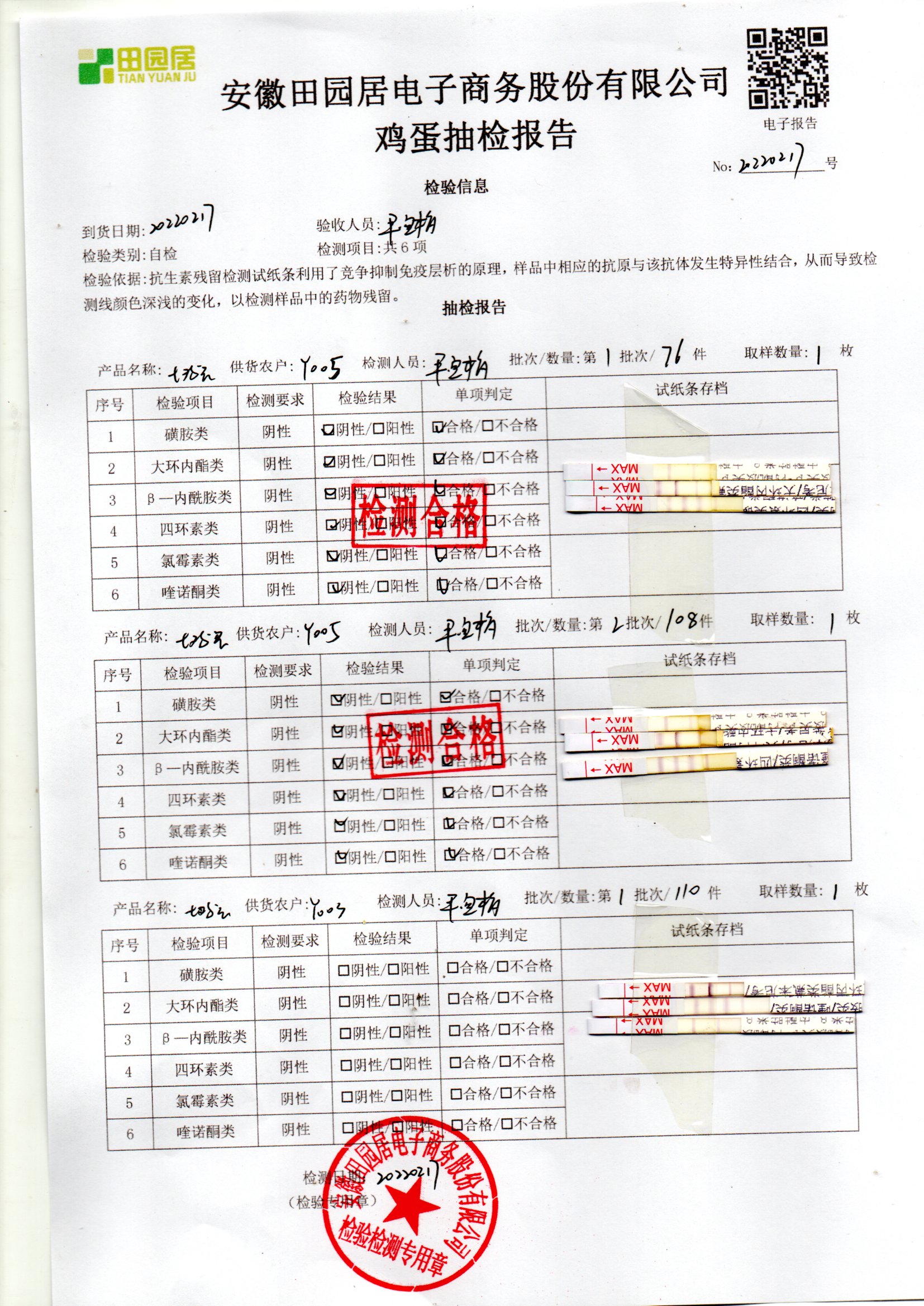 2022年02月17号鲜鸡蛋检测报告