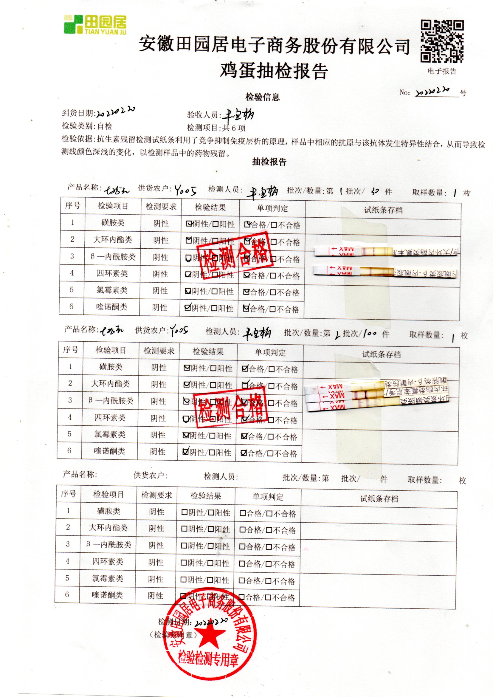 2022年02月22号鲜鸡蛋检测报告
