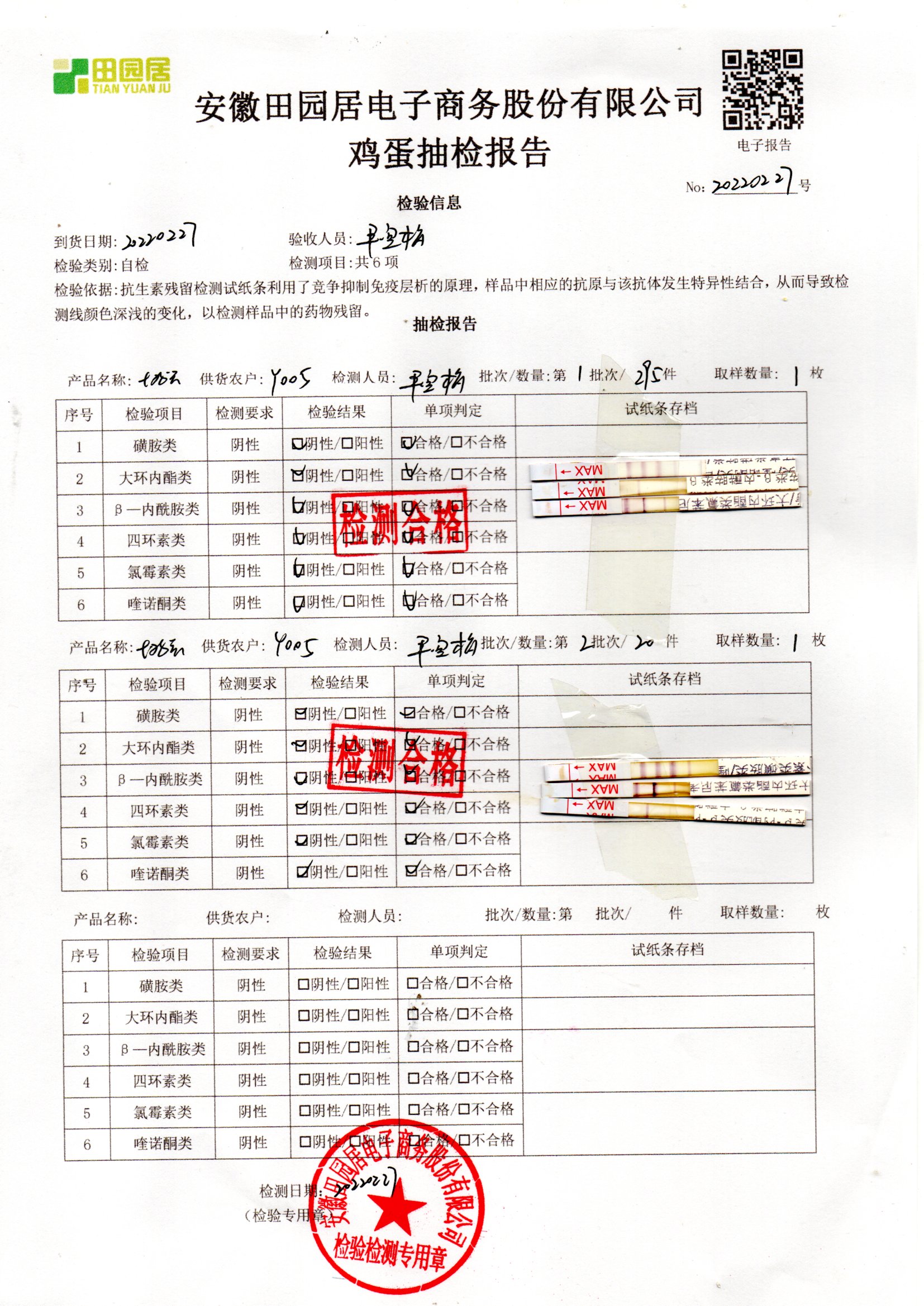 2022年02月28号鲜鸡蛋检测报告
