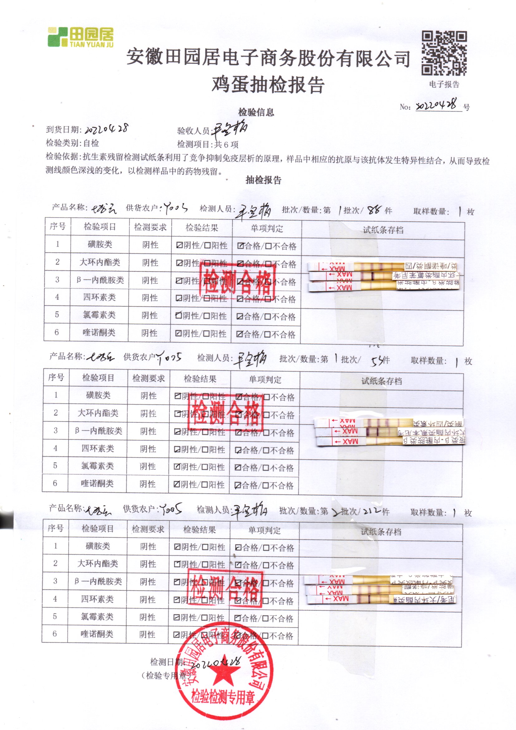 2022年04月28号鲜鸡蛋检测报告