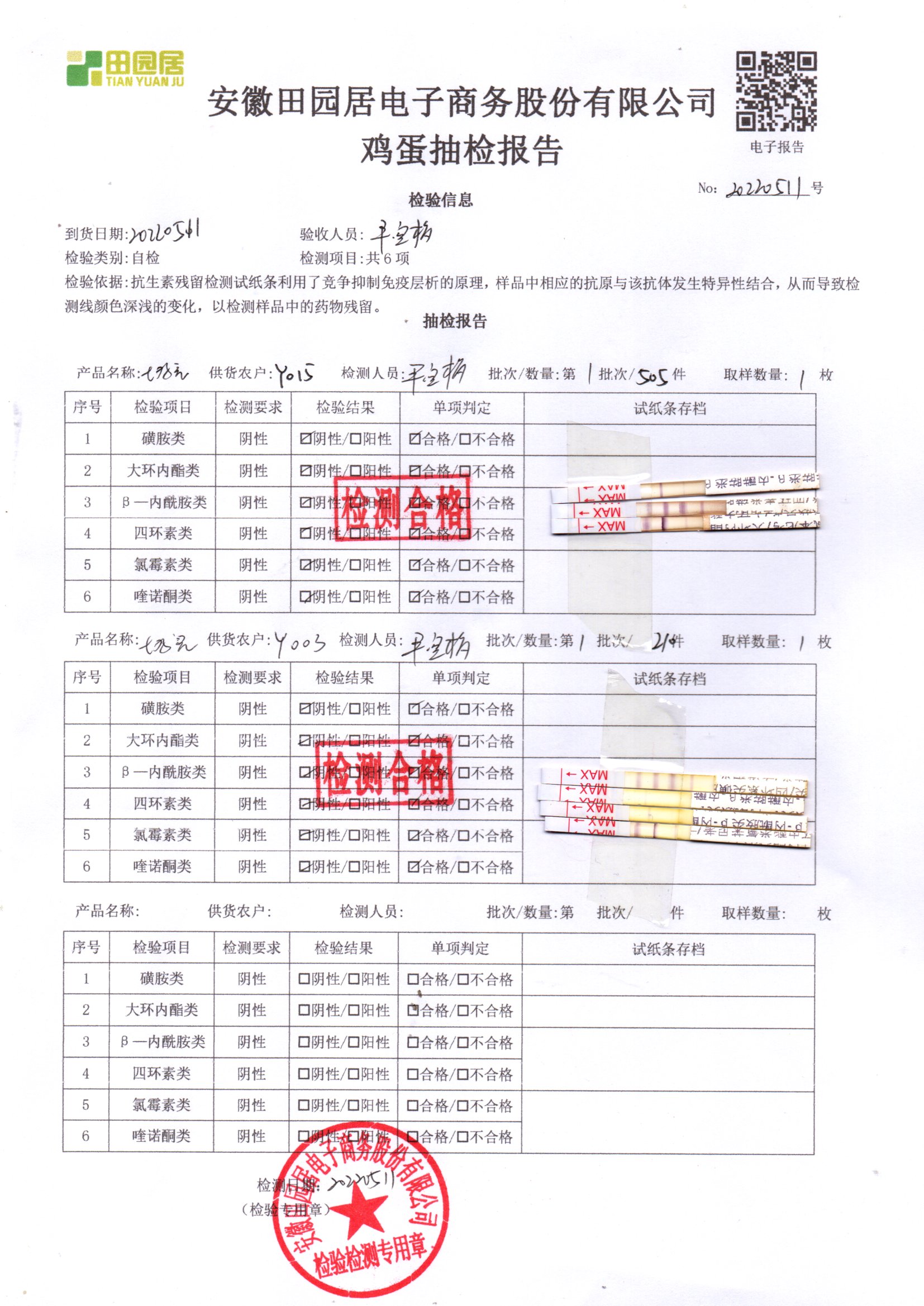 2022年05月11号鲜鸡蛋检测报告