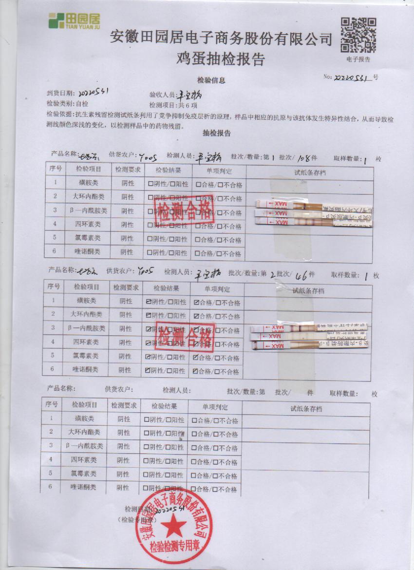 2022年5月31号鲜鸡蛋检测报告
