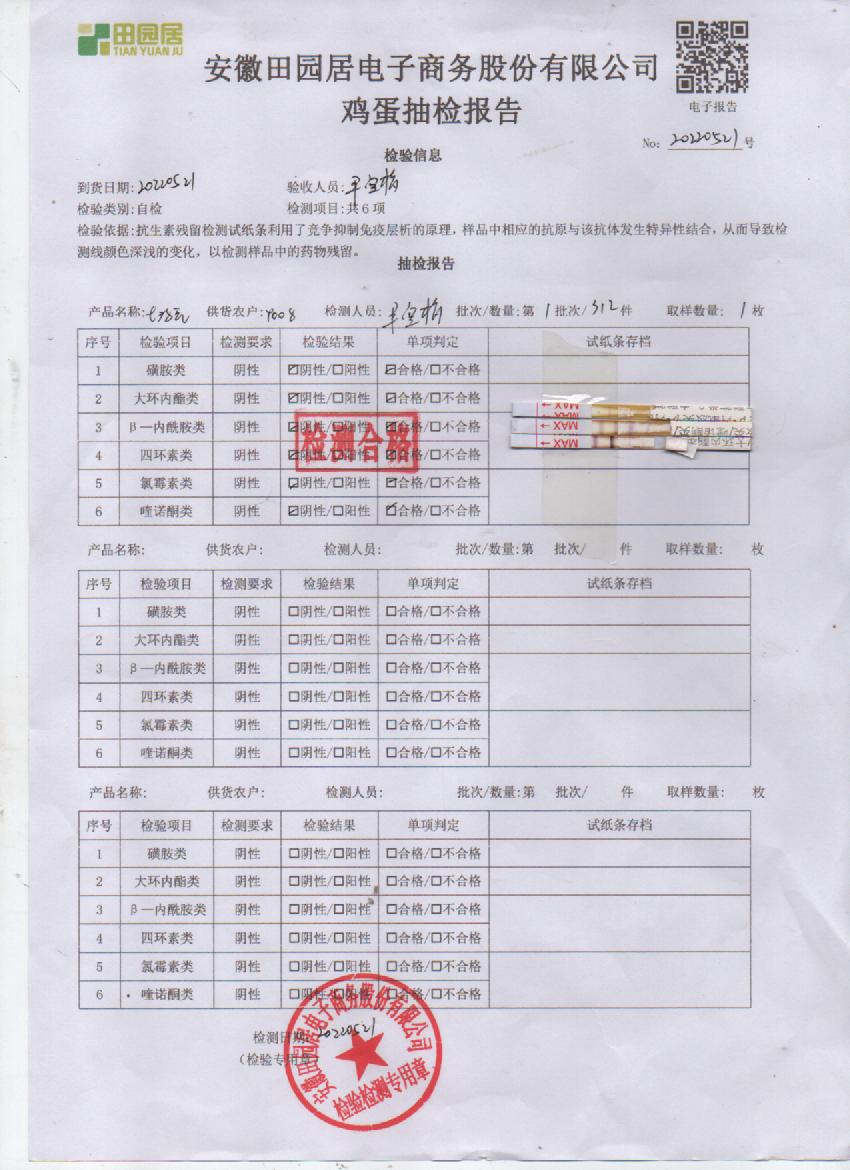 2022年5月21号鲜鸡蛋检测报告