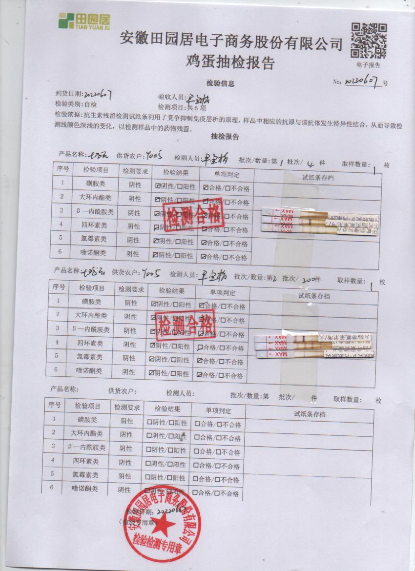 2022年6月7号鲜鸡蛋检测报告