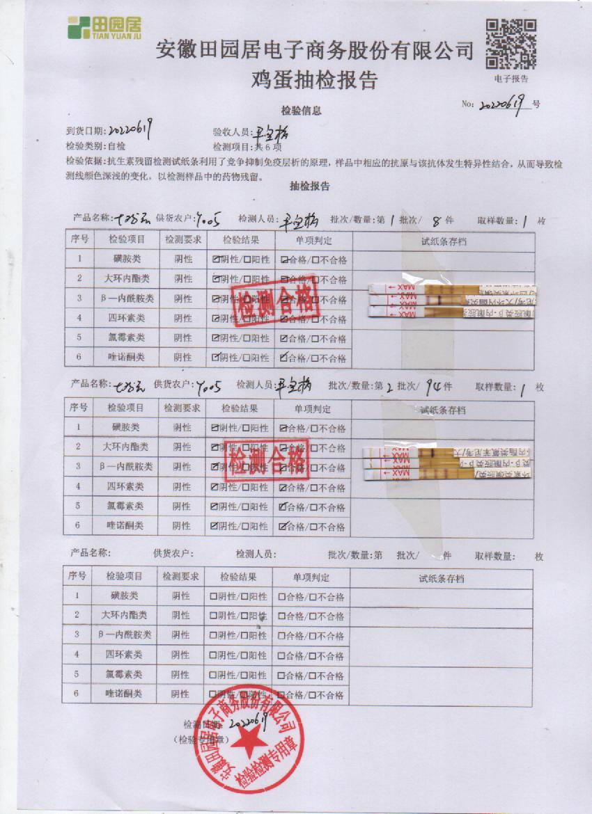 2022年6月19号鲜鸡蛋检测报告