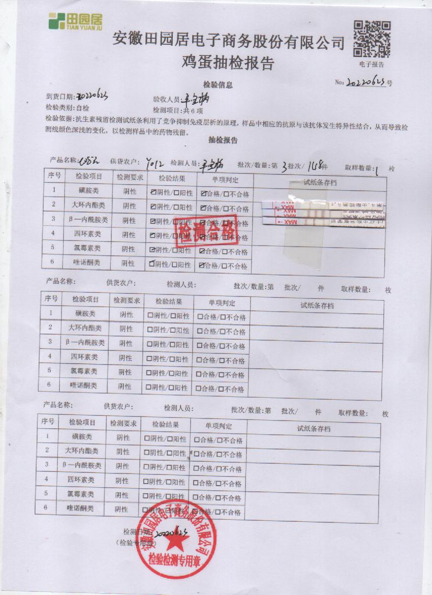 2022年6月26号鲜鸡蛋检测报告