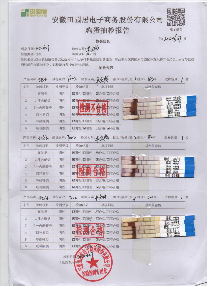 2022年6月27号鲜鸡蛋检测报告