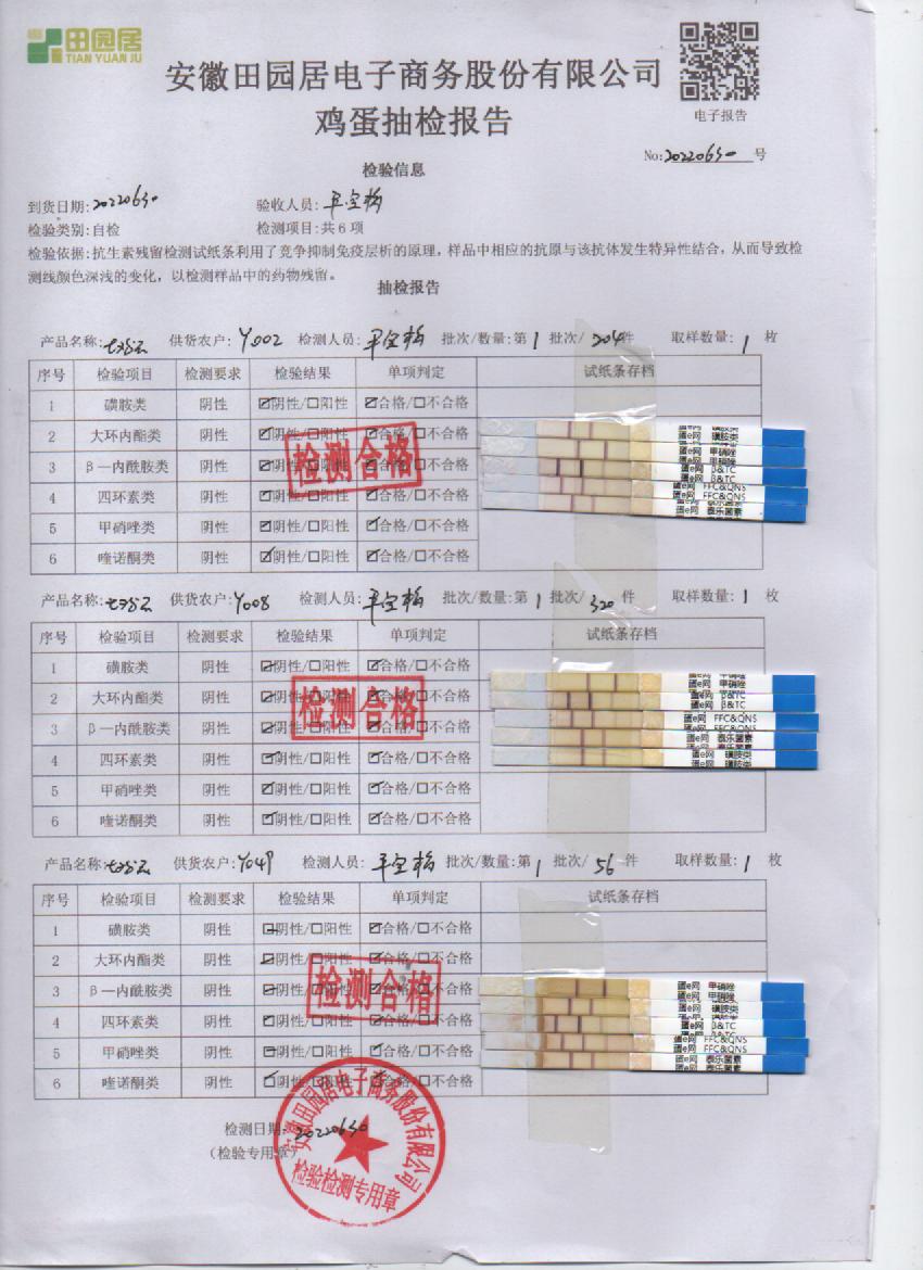2022年6月30号鲜鸡蛋检测报告