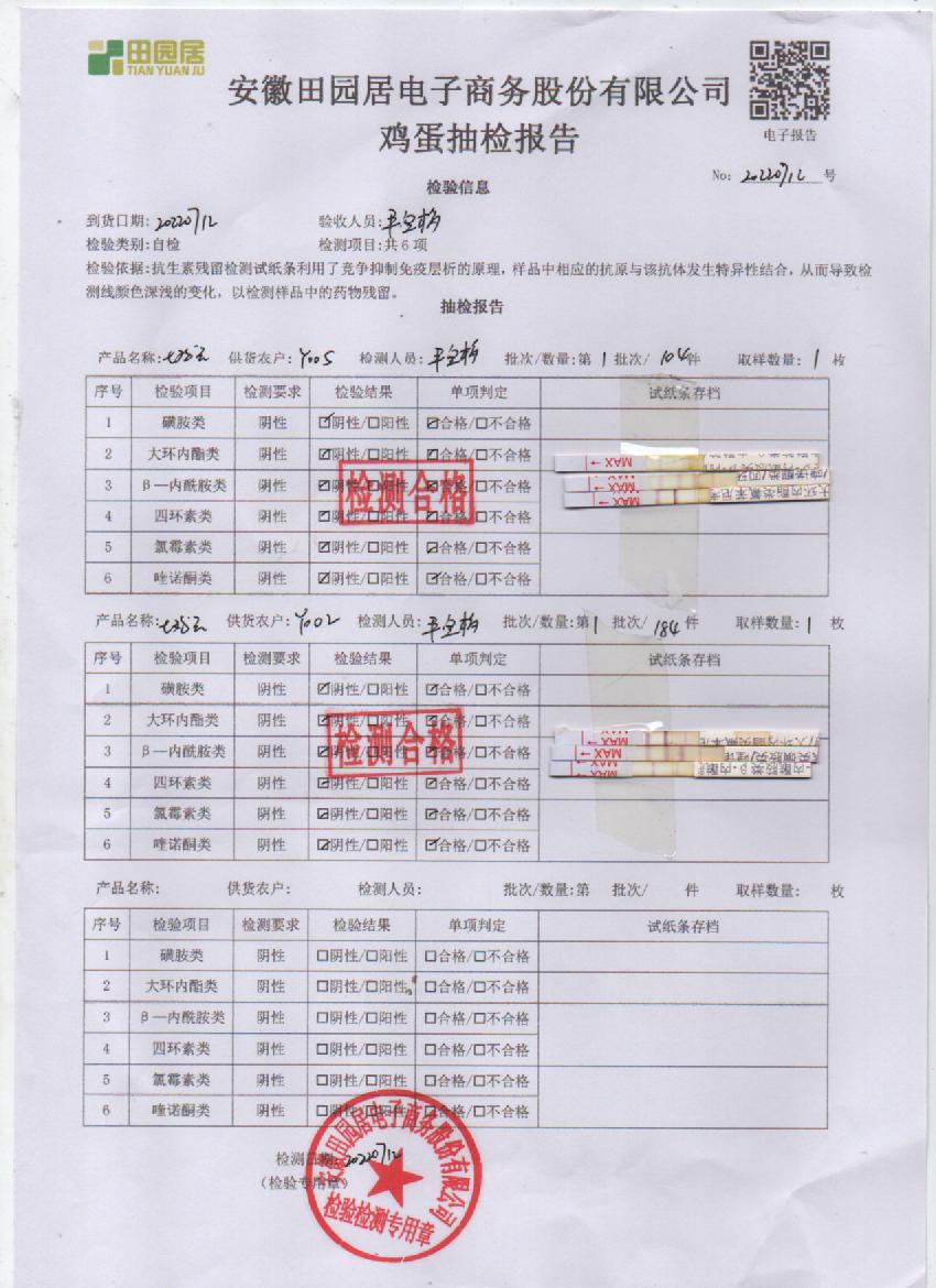 2022年7月7号鲜鸡蛋检测报告