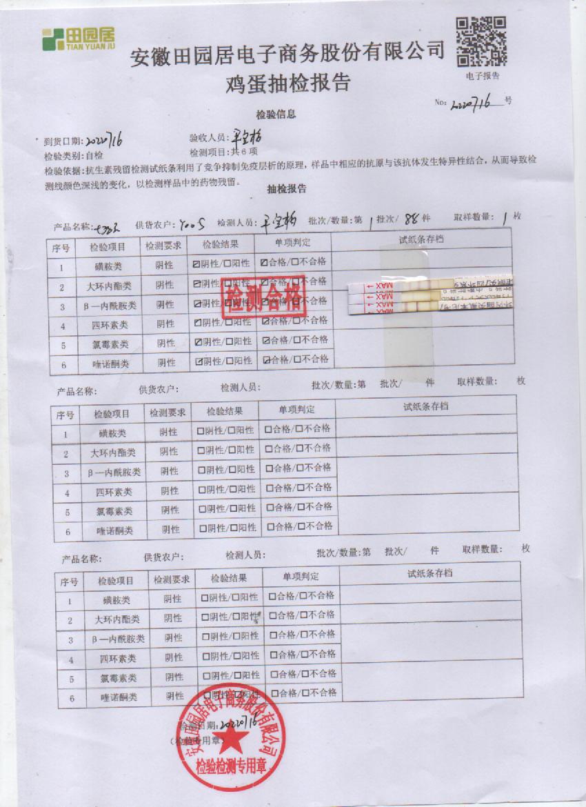 2022年7月16号鲜鸡蛋检测报告