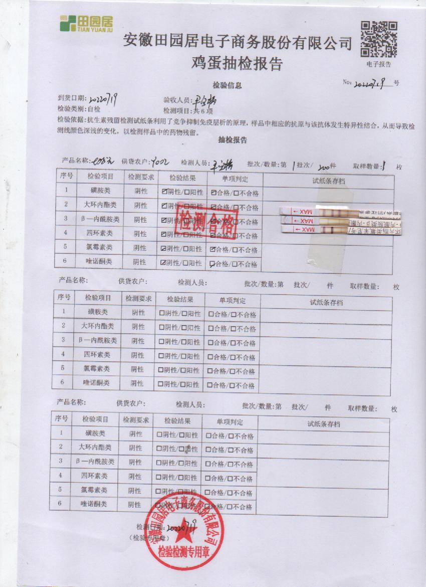 2022年7月18号鲜鸡蛋检测报告