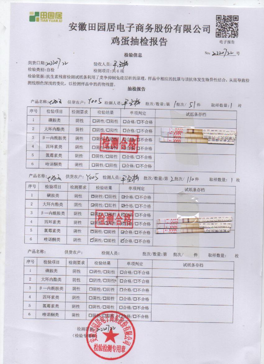 2022年7月22号鲜鸡蛋检测报告