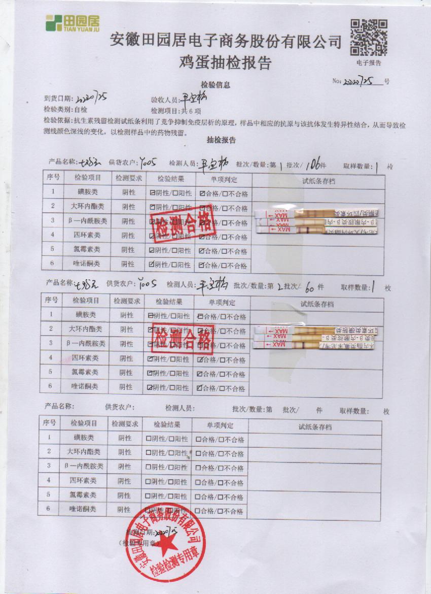 2022年7月25号鲜鸡蛋检测报告
