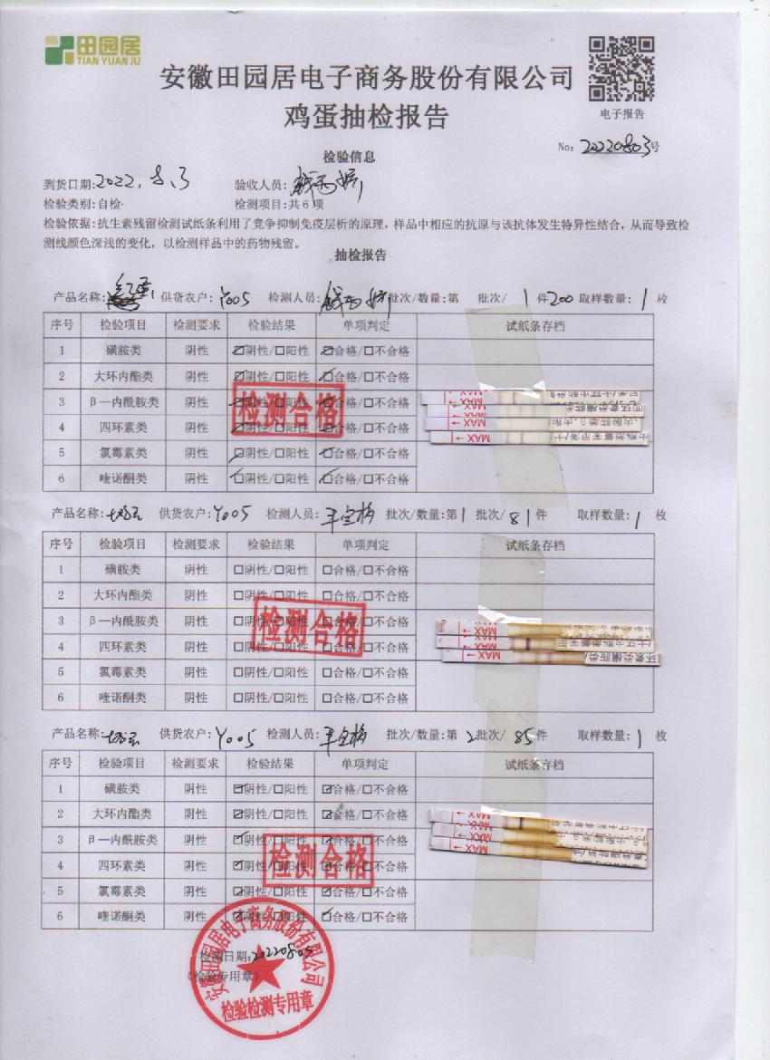 2022年8月3号鲜鸡蛋检测报告