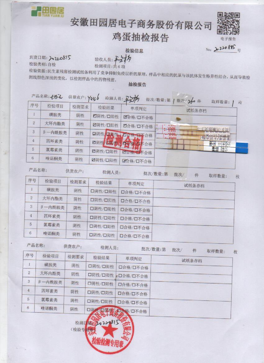2022年8月15号鲜鸡蛋检测报告