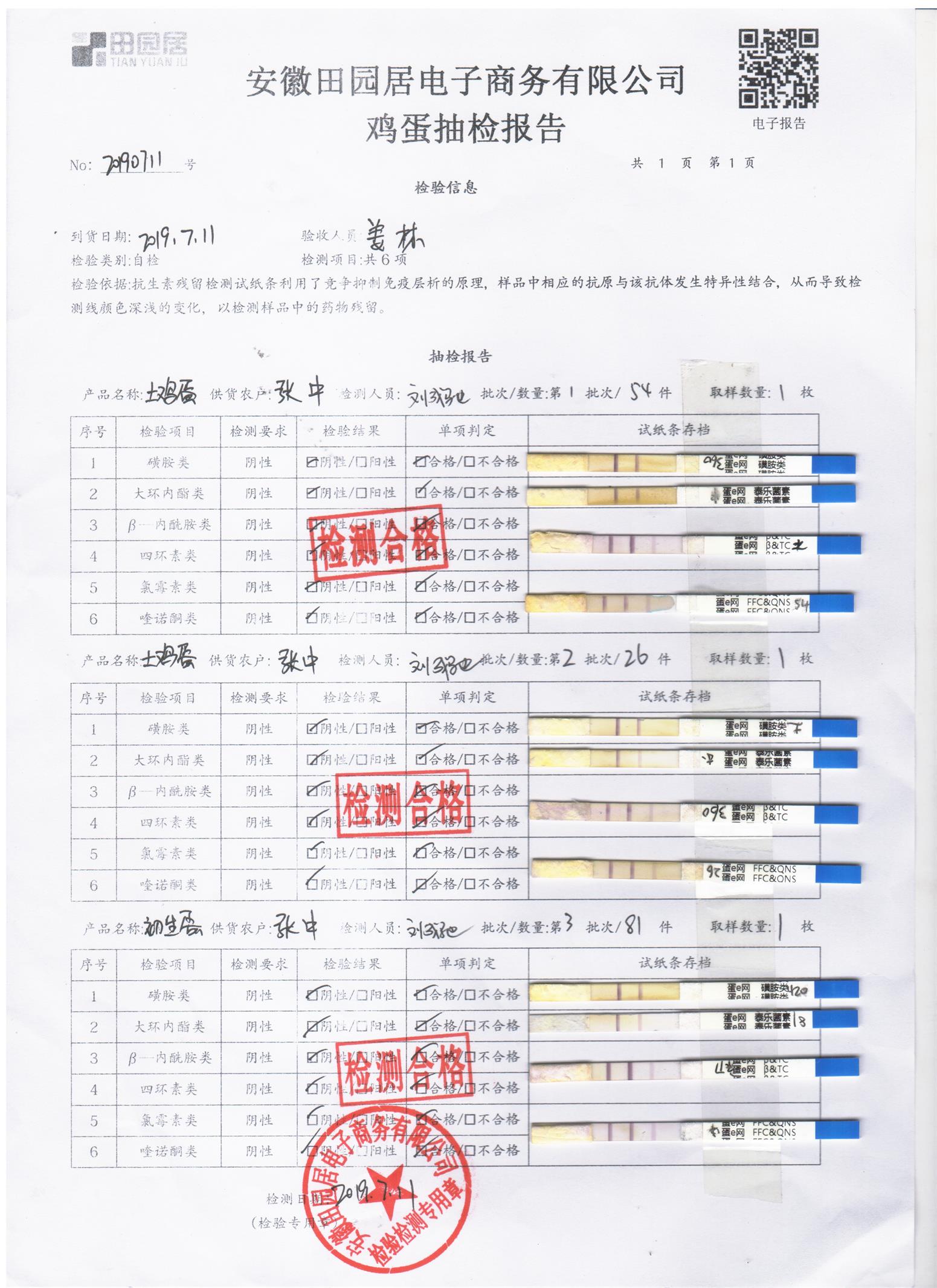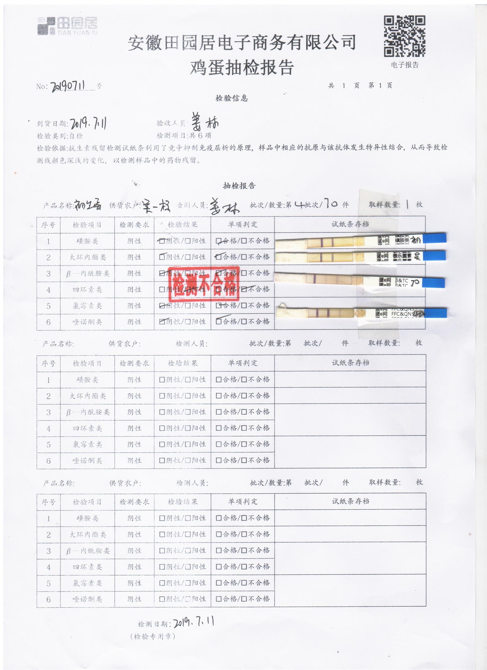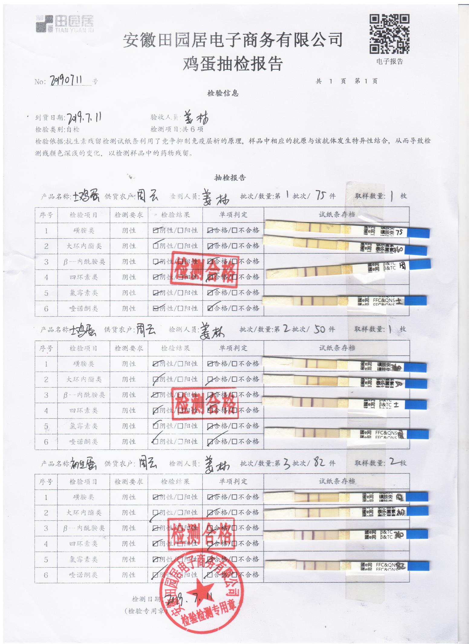 2019年7月11日鸡蛋自检报告