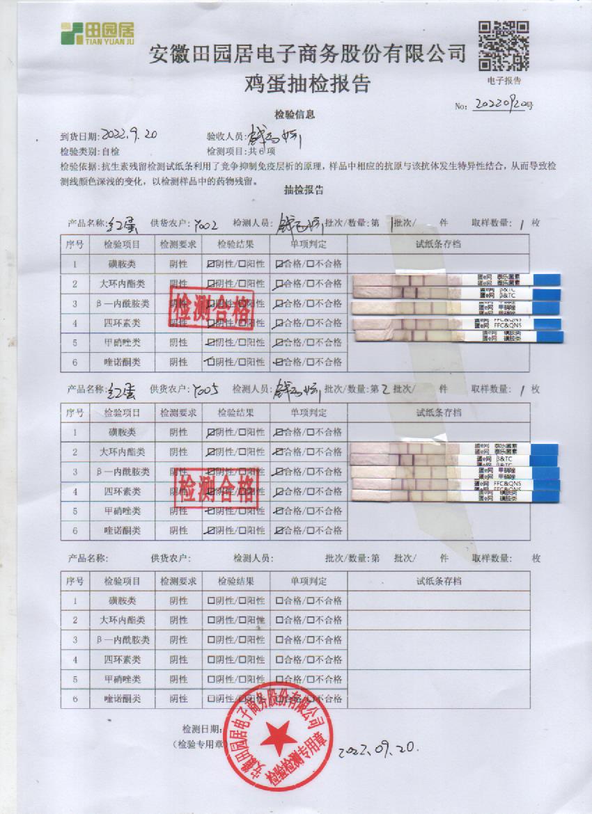 2022年9月20号鲜鸡蛋检测报告