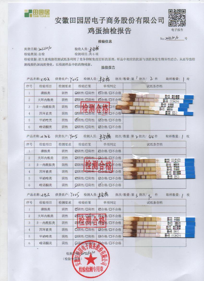 2022年10月10号鲜鸡蛋检测报告