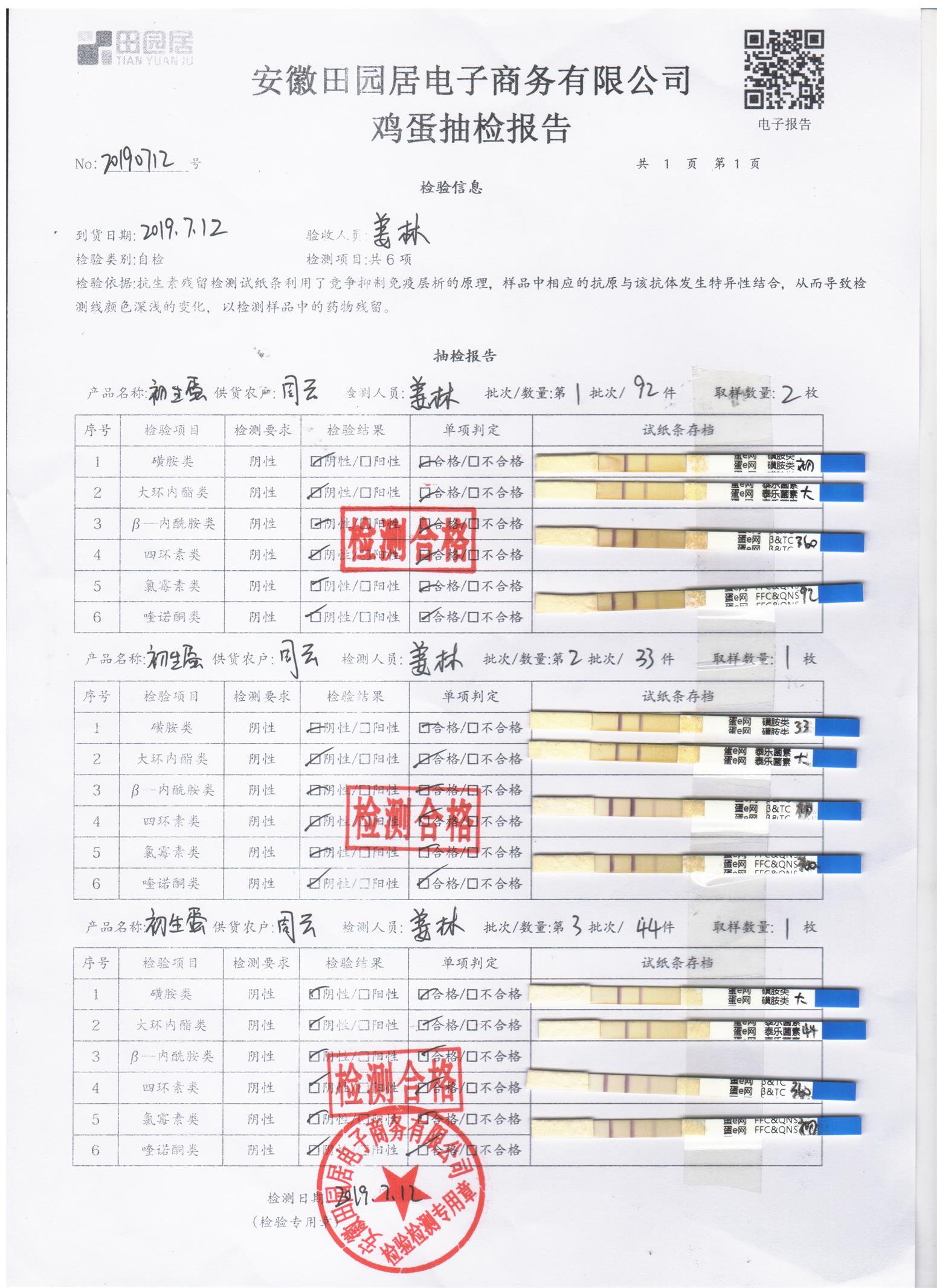 2019年7月12日鸡蛋自检报告