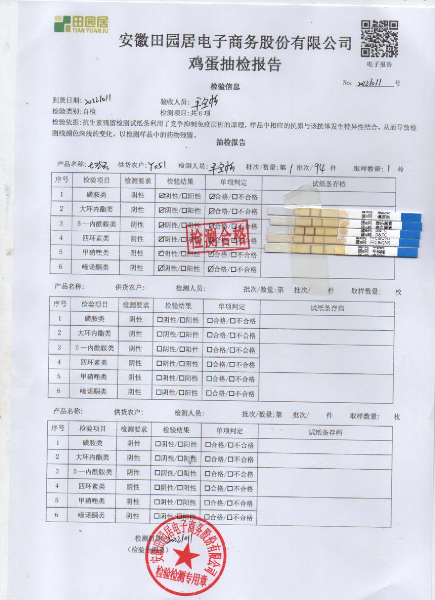 2022年10月11号鲜鸡蛋检测报告