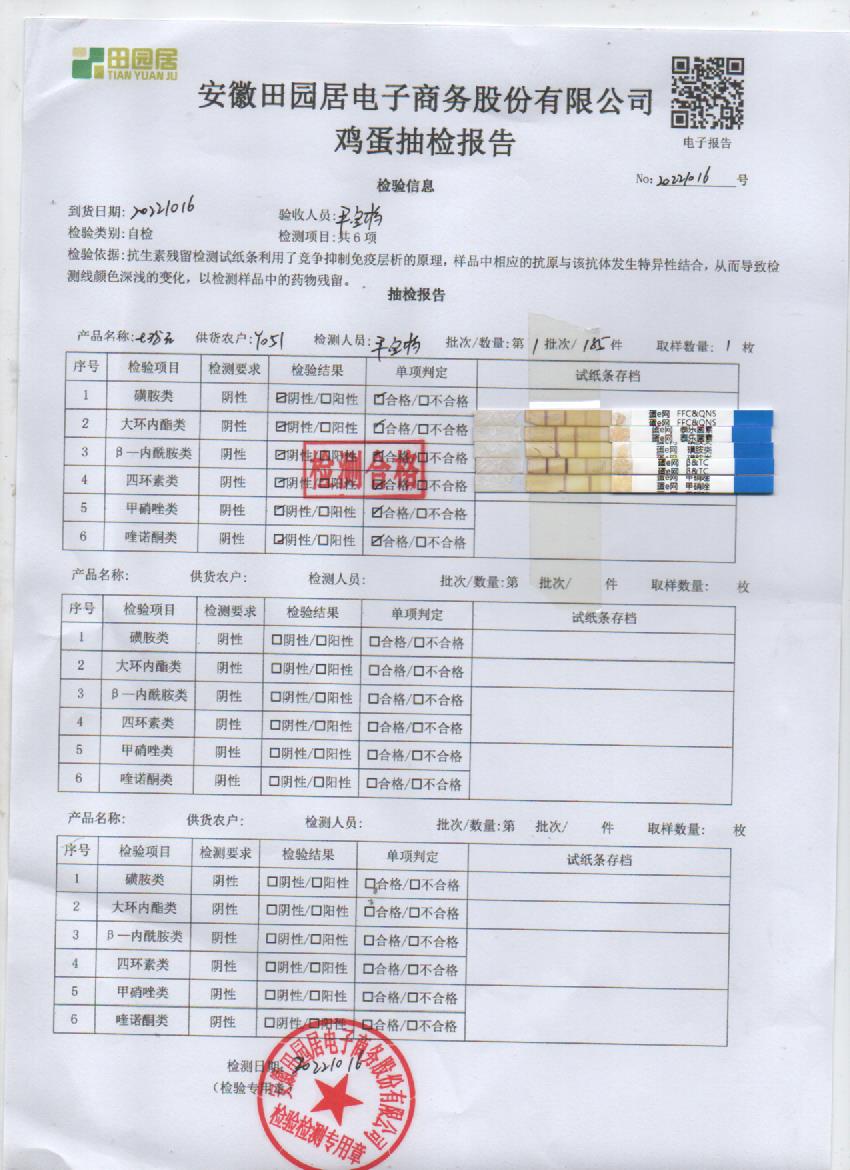 2022年10月16号鲜鸡蛋检测报告