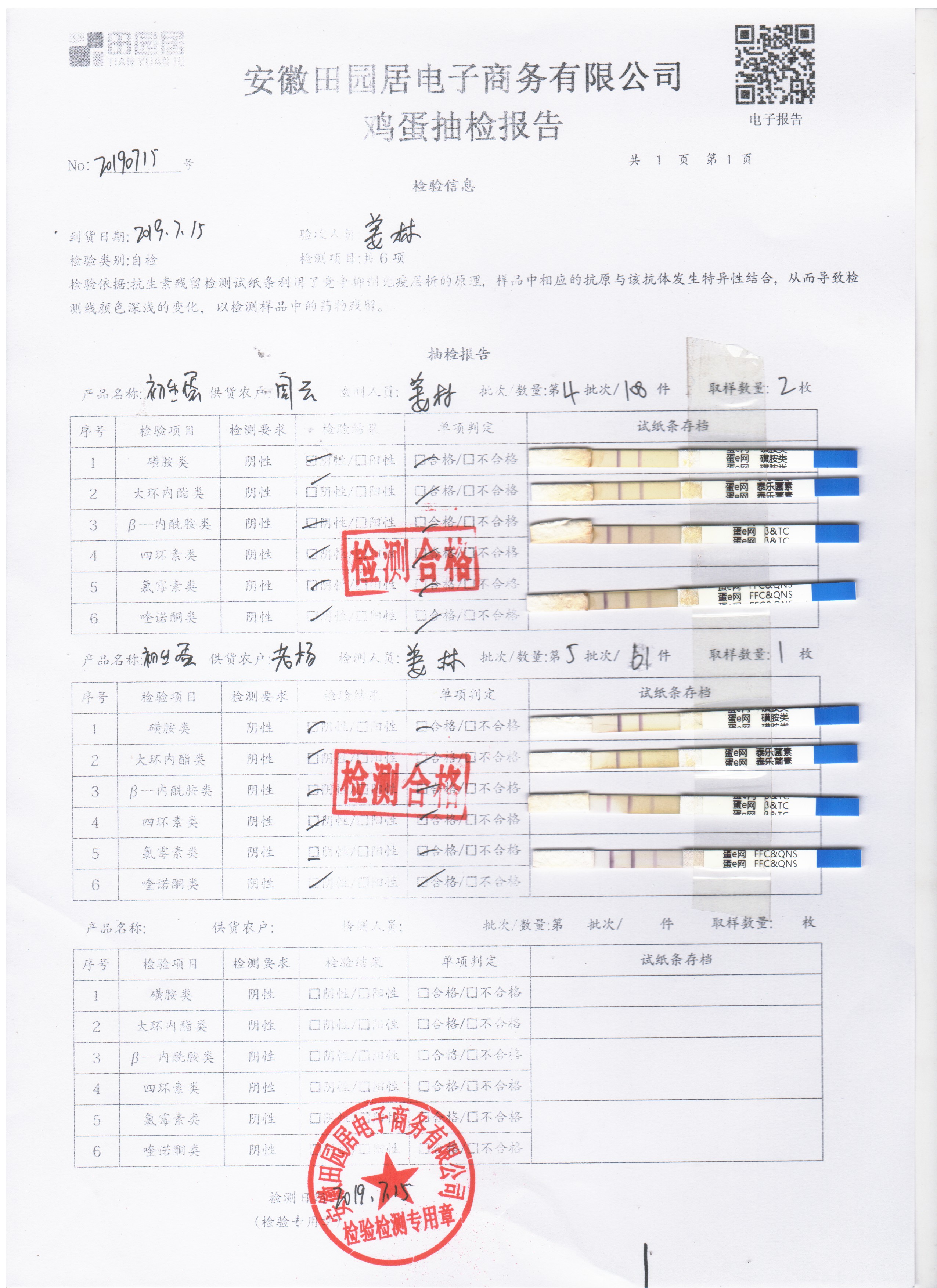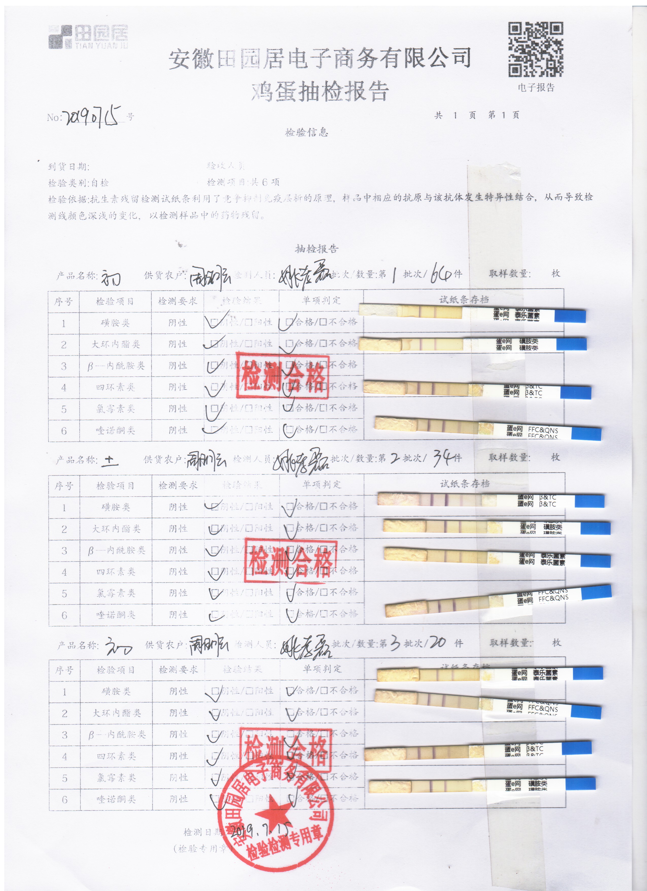 2019年7月15日鸡蛋自检报告