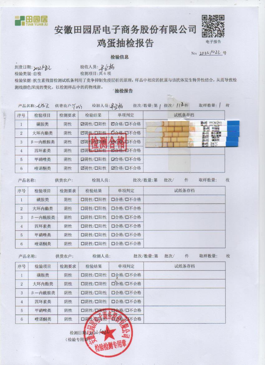 2022年10月22号鲜鸡蛋检测报告