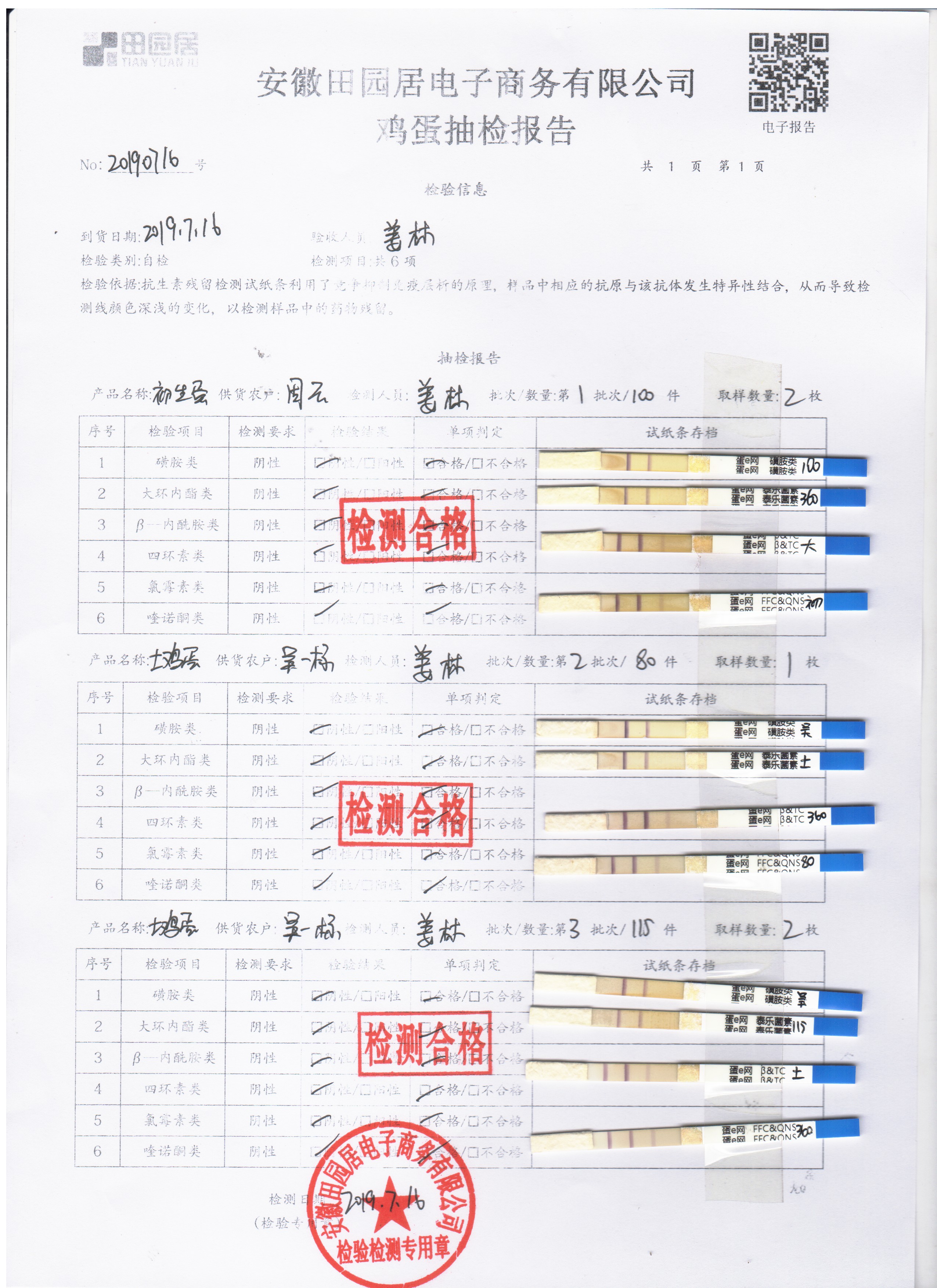 2019年7月16日鸡蛋自检报告