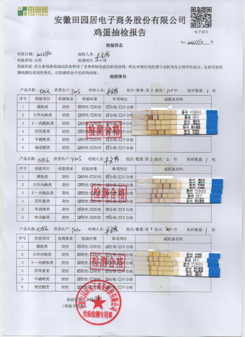 2022年11月10号鲜鸡蛋检测报告