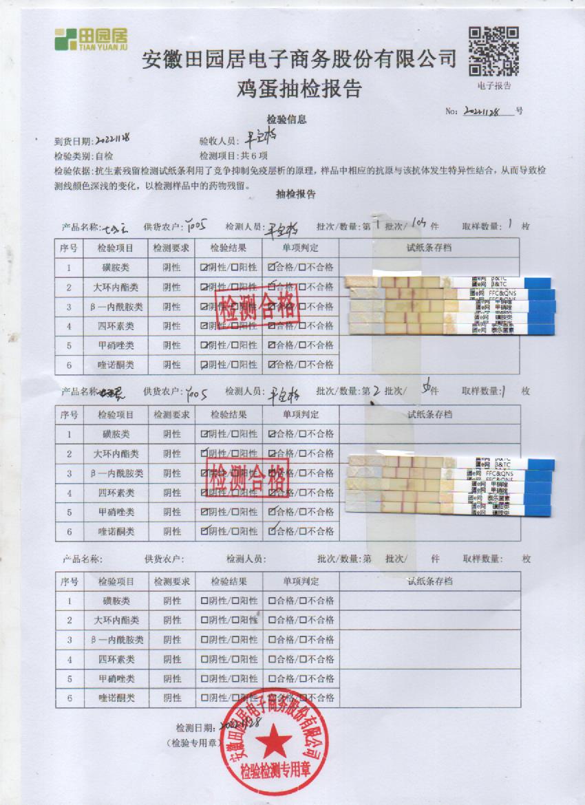 2022年11月28号鲜鸡蛋检测报告
