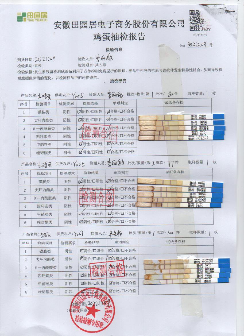 2022年12月09号鲜鸡蛋检测报告