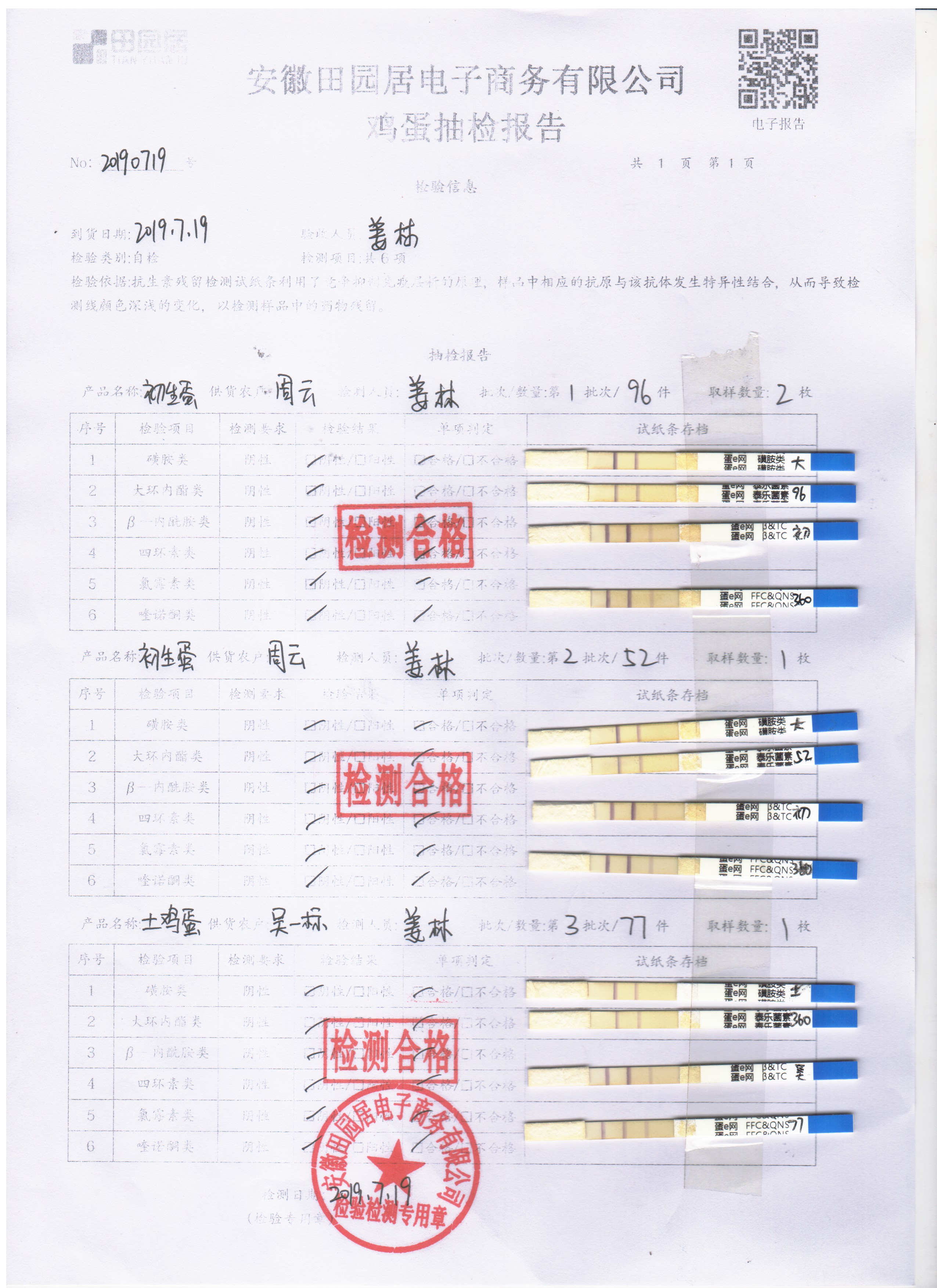 2019年7月19日鸡蛋自检报告