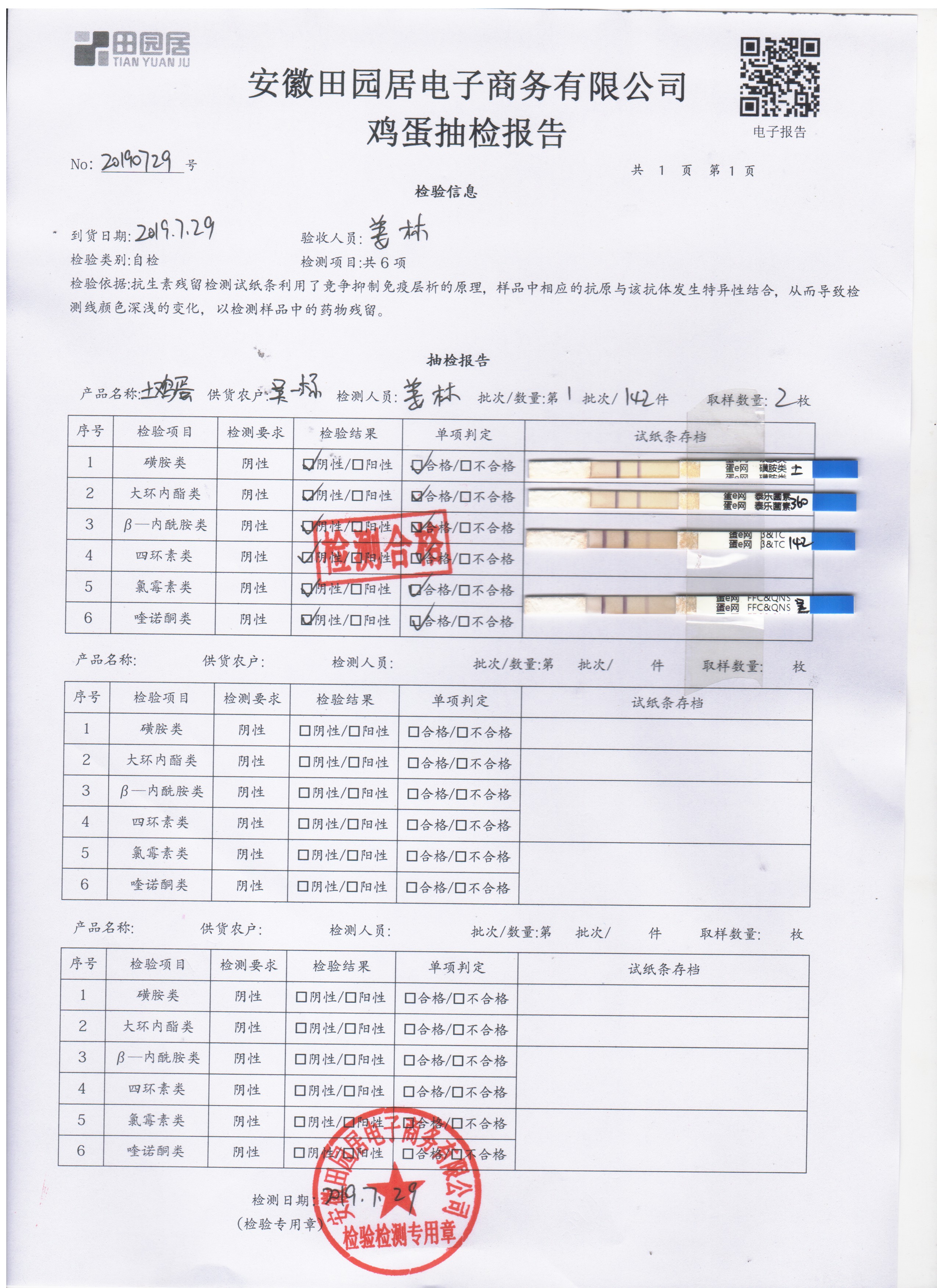 2019年7月29日鸡蛋自检报告