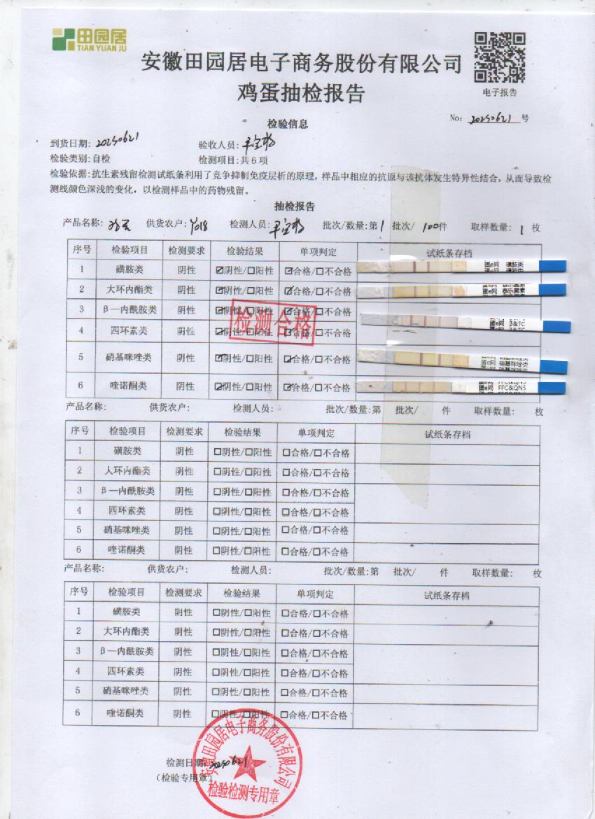 2023年06月21号鲜鸡蛋检测报告