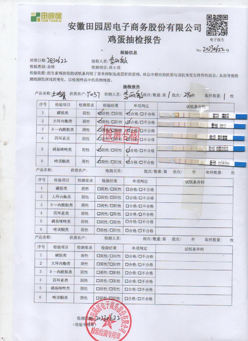 2023年06月22号鲜鸡蛋检测报告