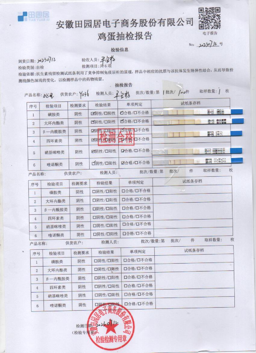 2023年07月12号鲜鸡蛋检测报告