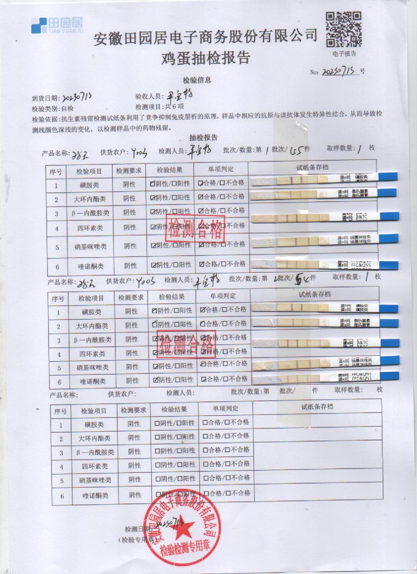 2023年07月17号鲜鸡蛋检测报告