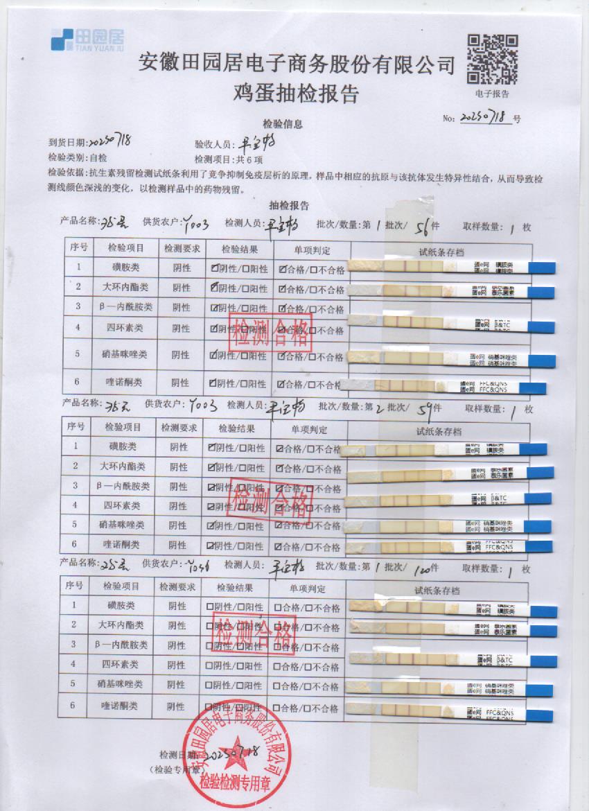 2023年07月18号鲜鸡蛋检测报告