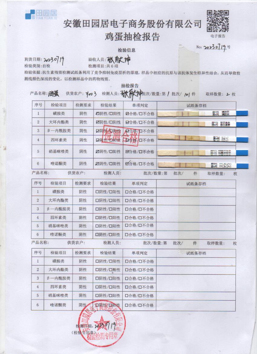2023年07月19号鲜鸡蛋检测报告
