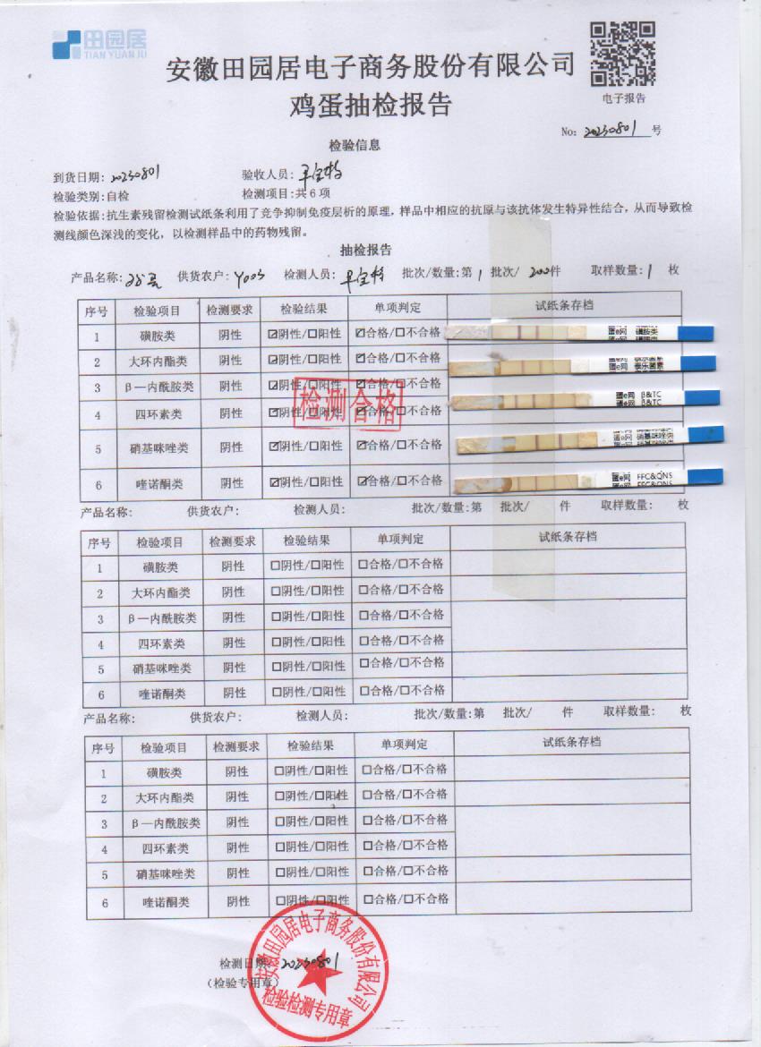 2023年07月30号鲜鸡蛋检测报告