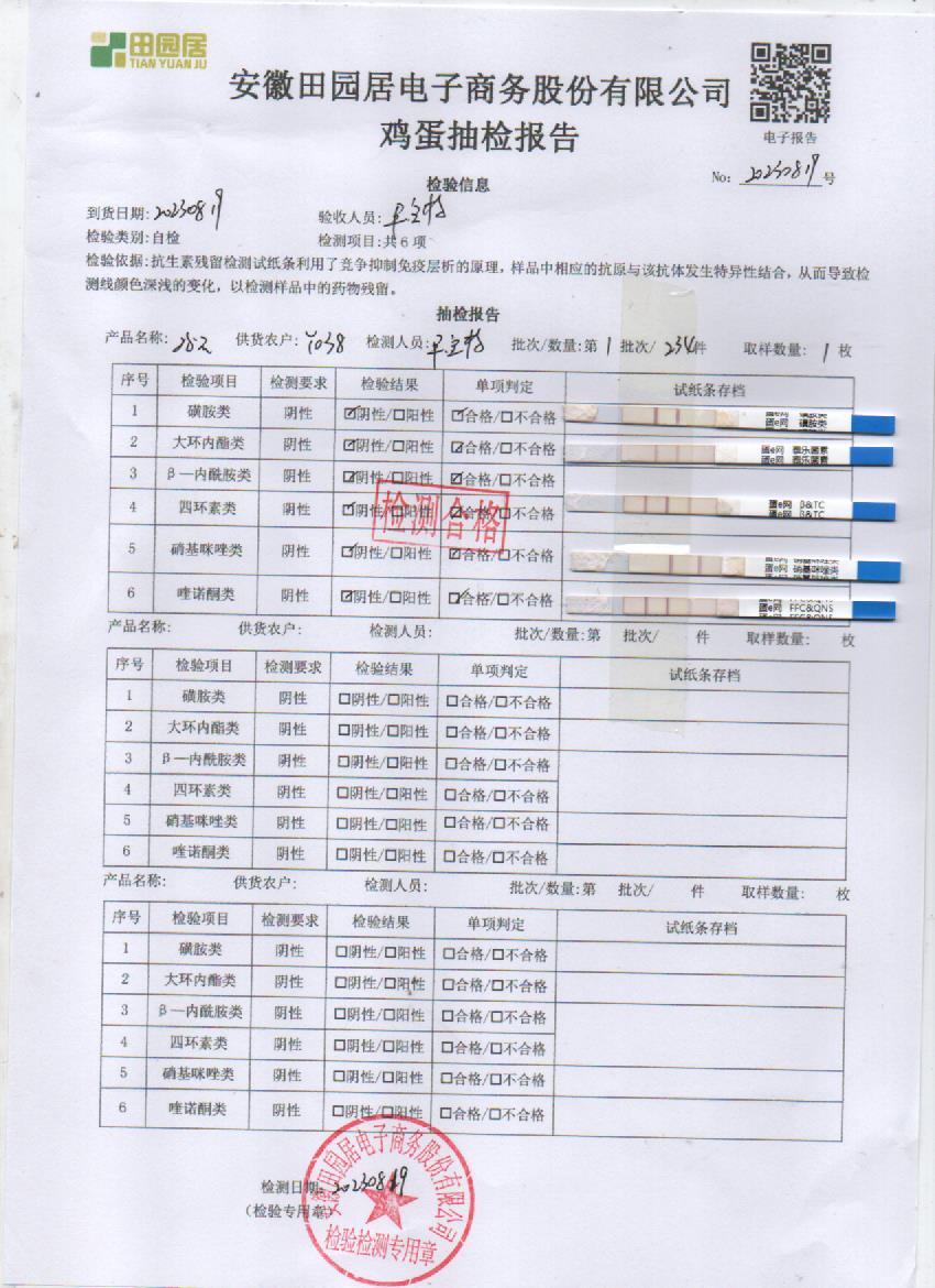 2023年08月23号鲜鸡蛋检测报告