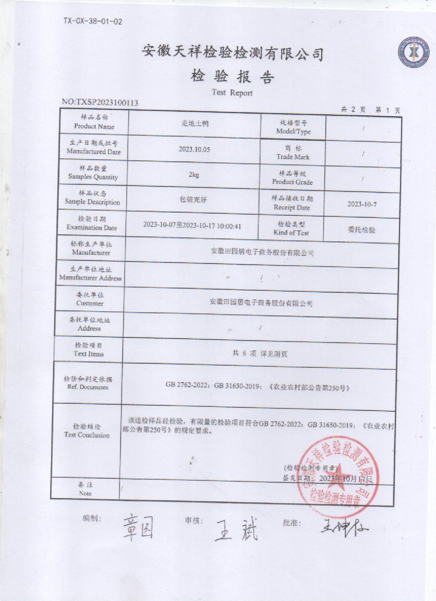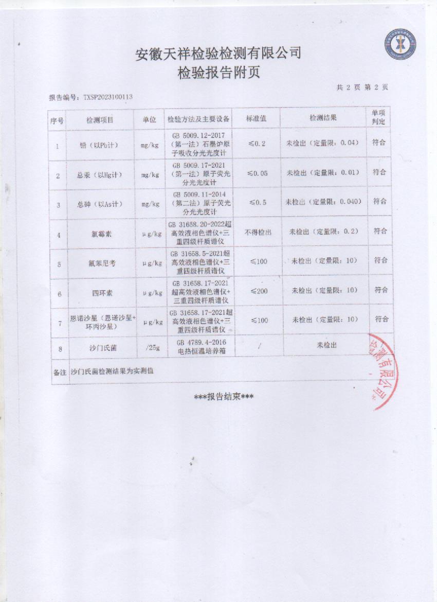 2023年10月7号走地土鸭检测报告