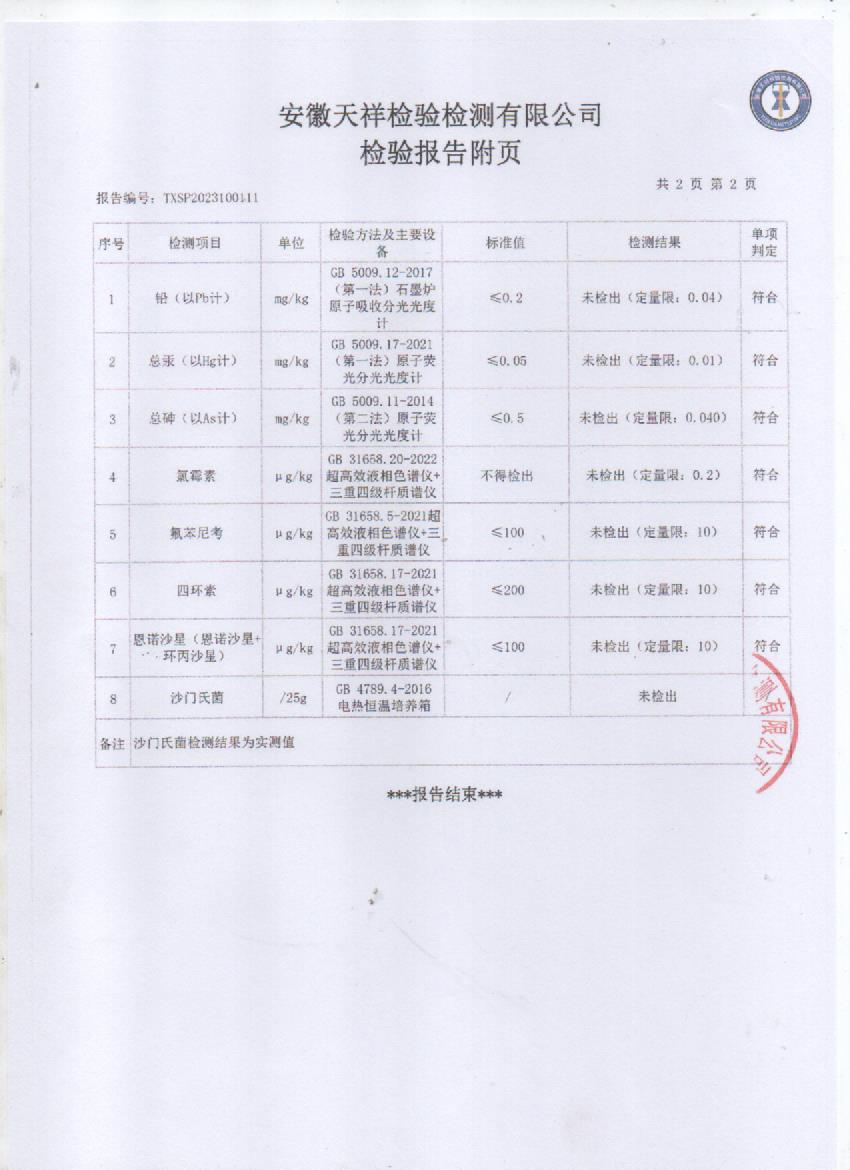 2023年10月7号走地土鸭检测报告