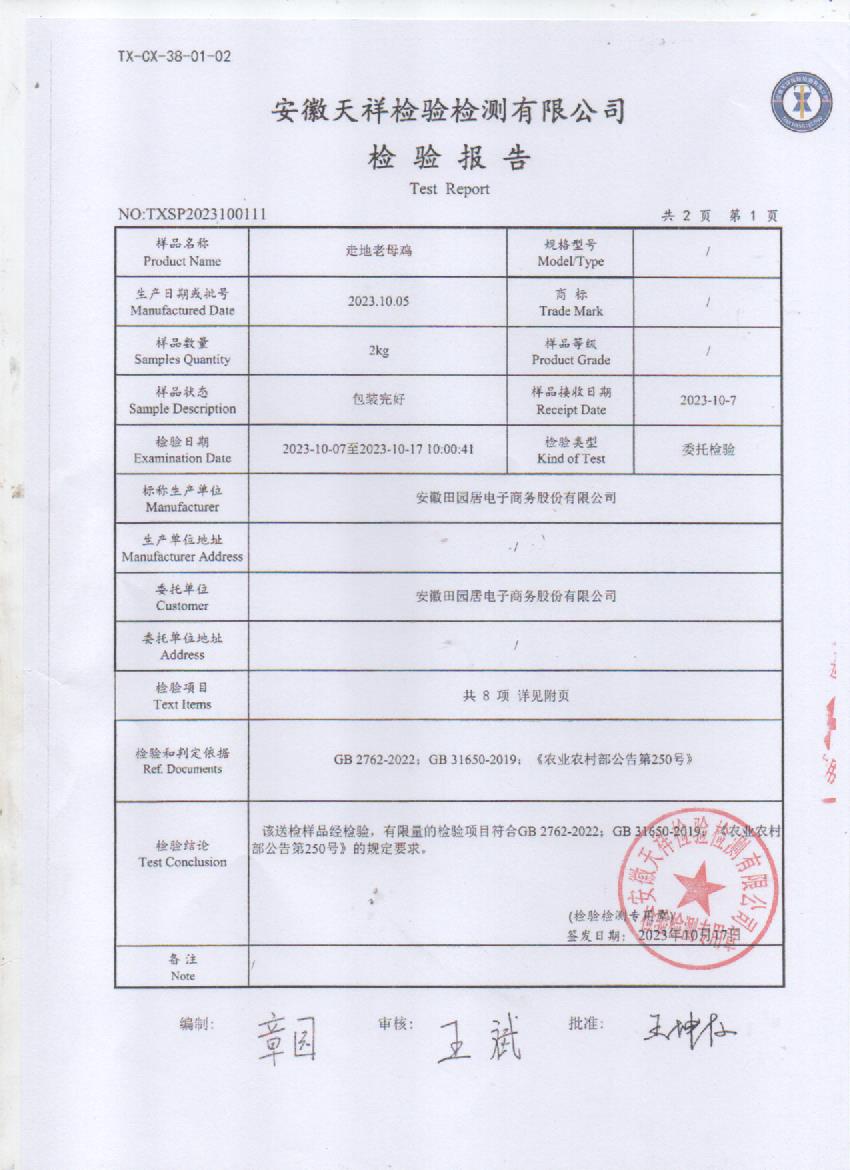 2023年10月7号走地老母鸡检测报告