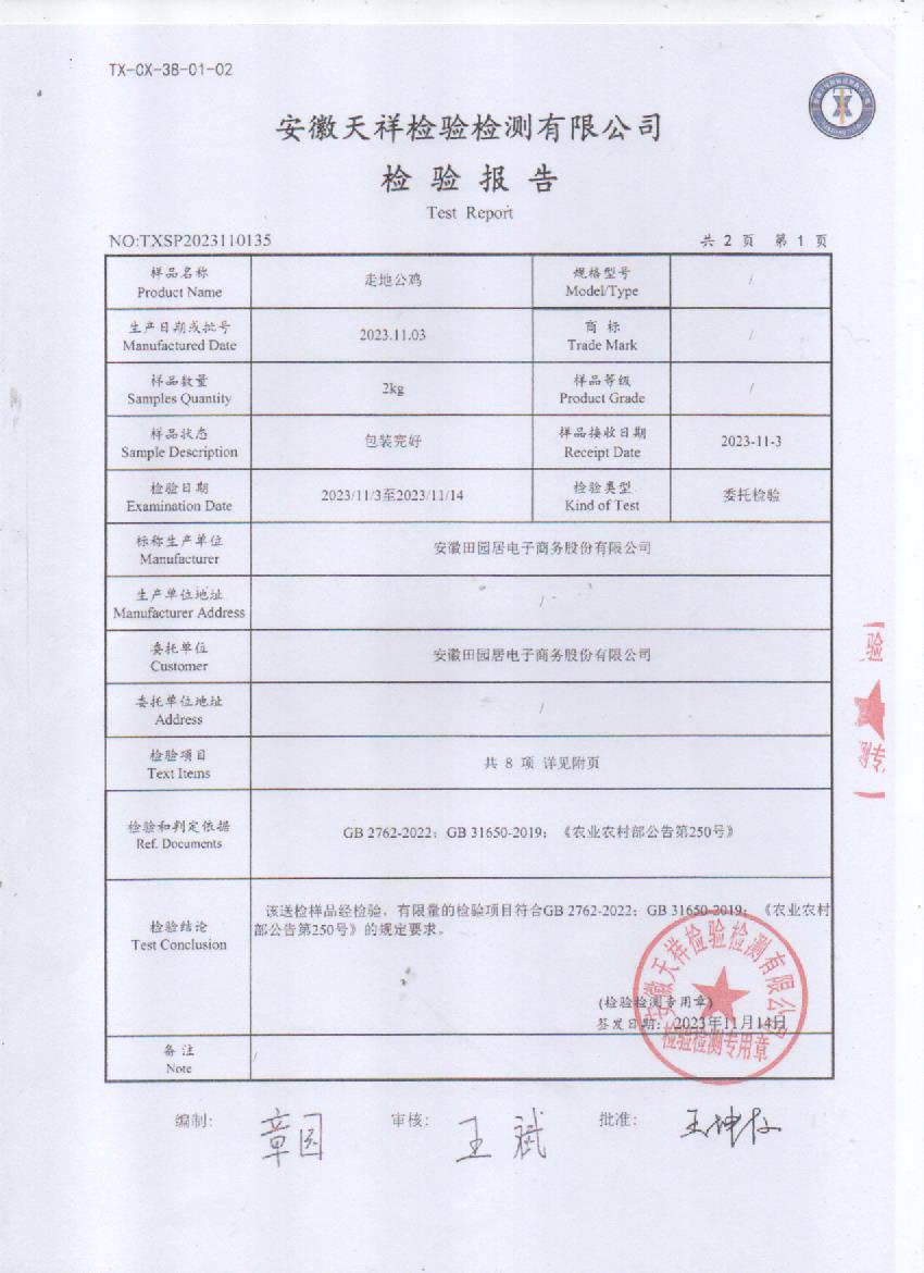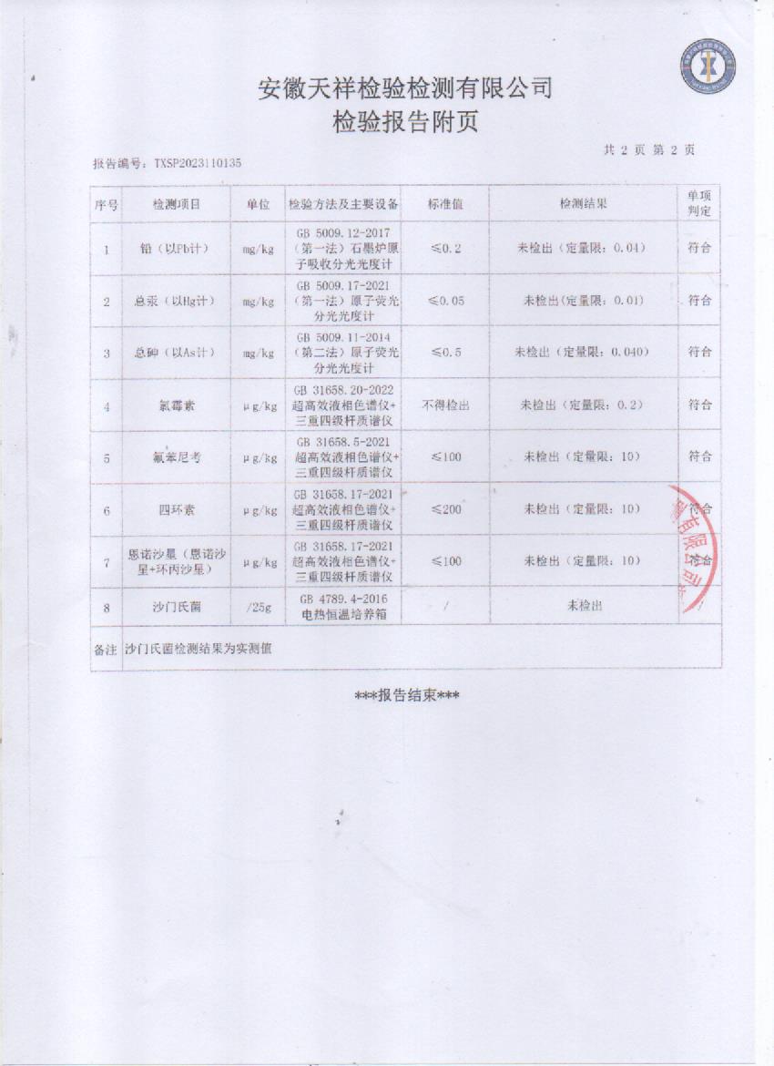 2023年11月3号走地公鸡检测报告