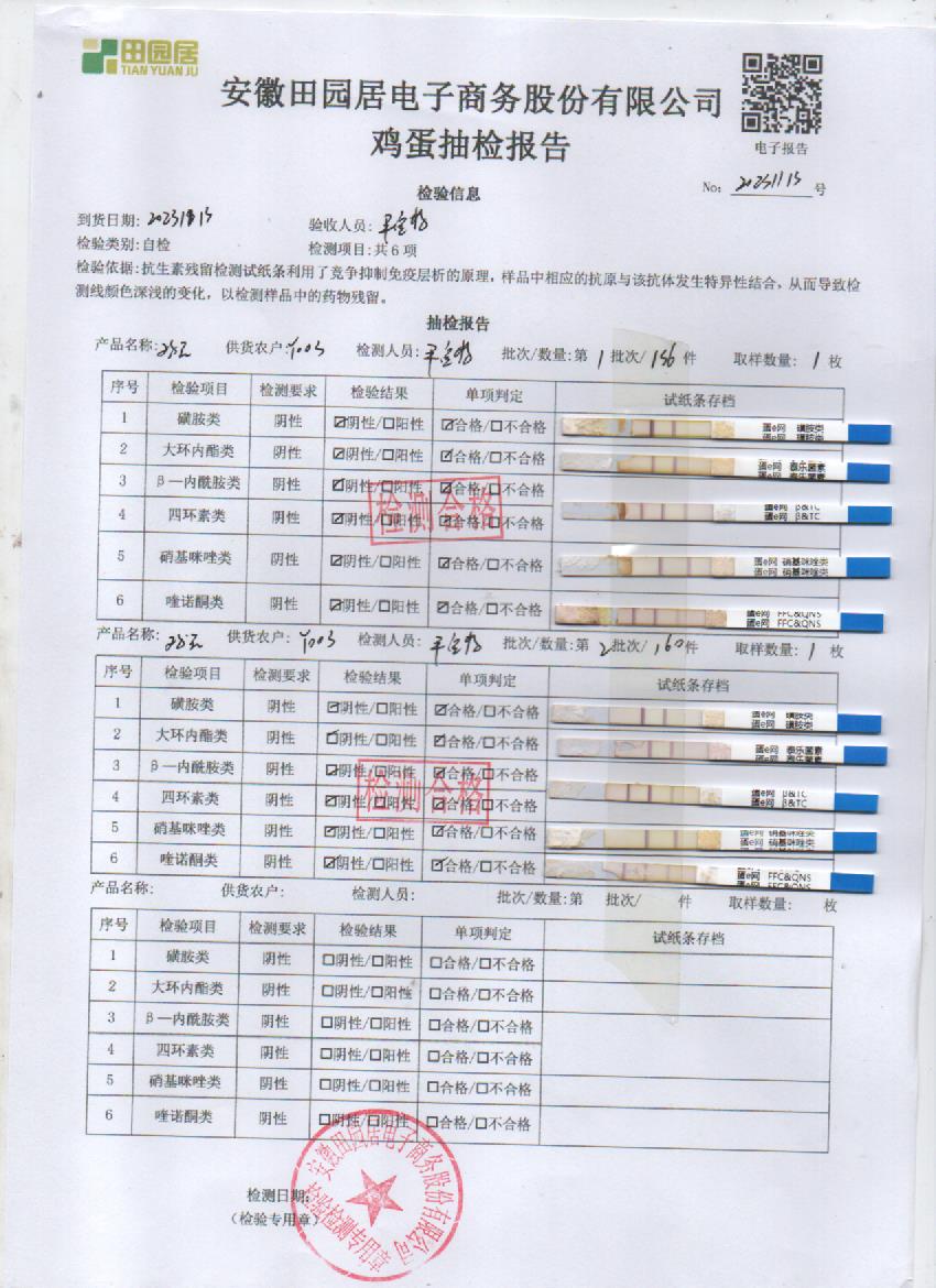 2023年11月15号鲜鸡蛋检测报告