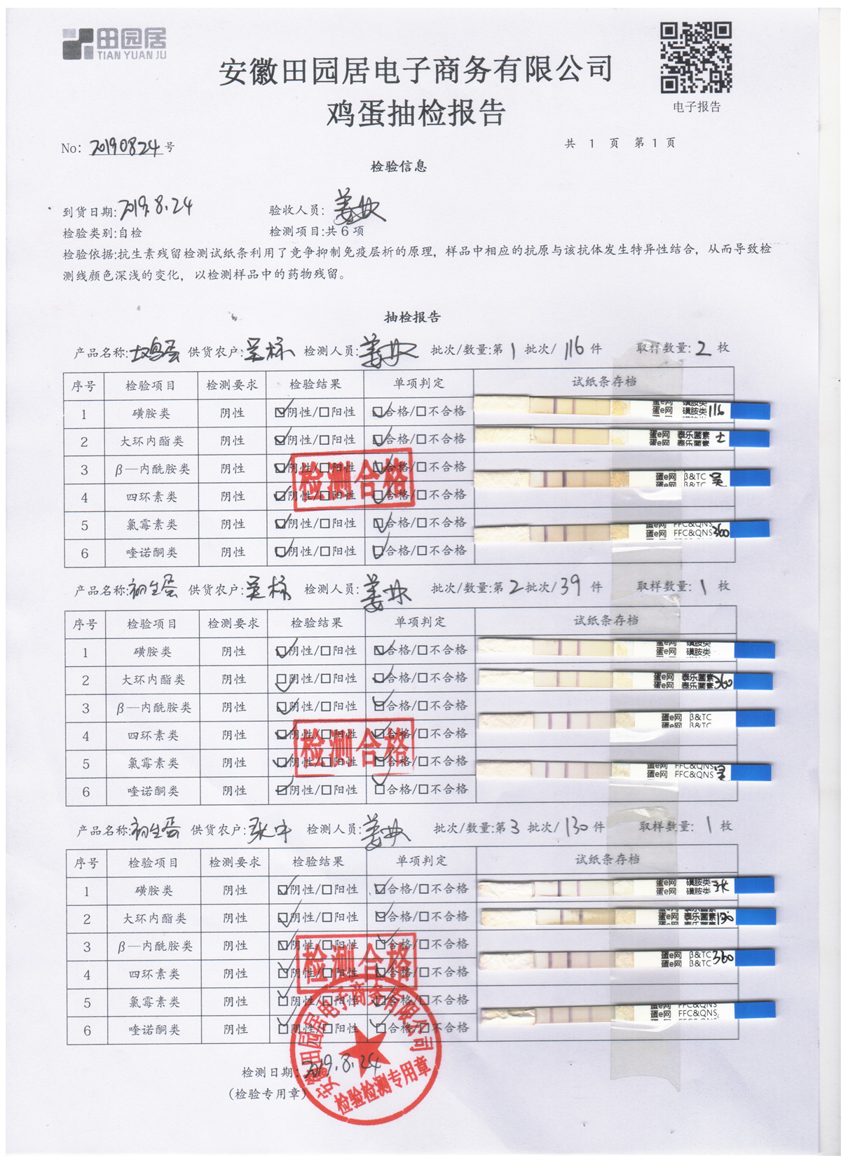2019年8月24日鸡蛋自检报告